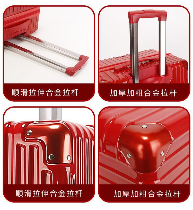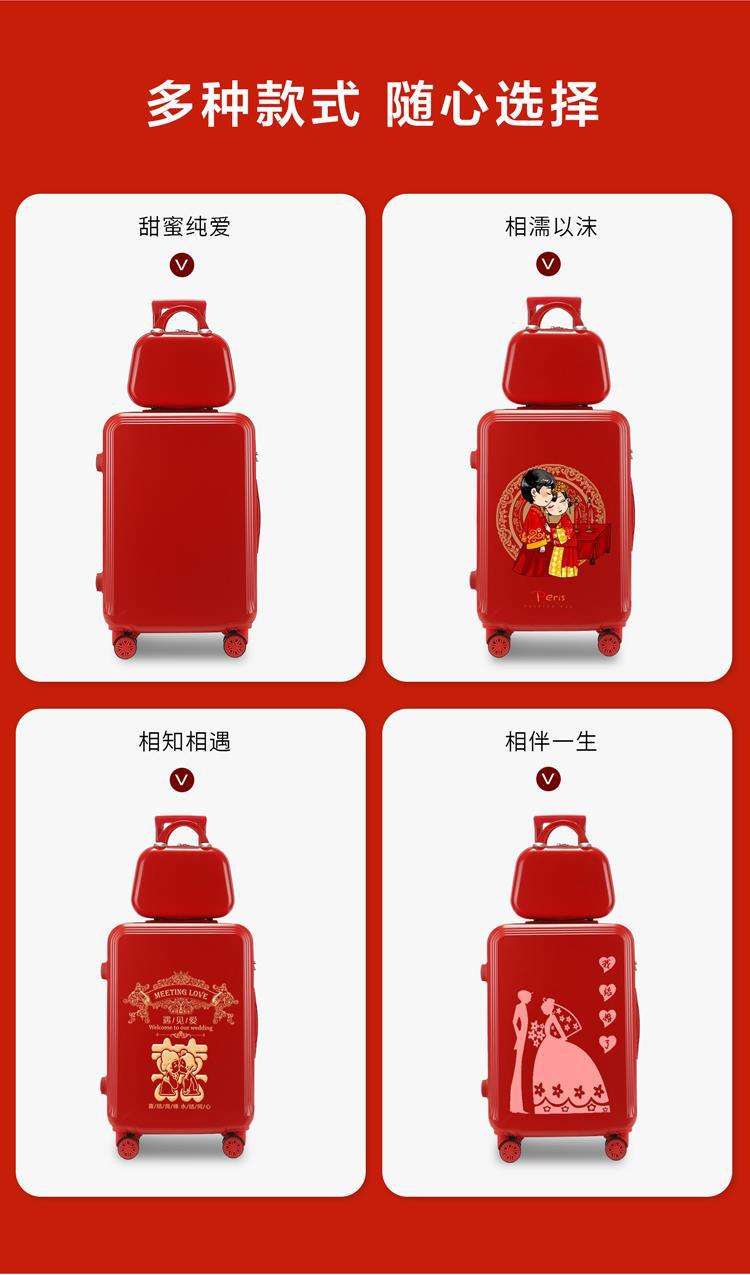 큰 빨간 결혼식 지참금 상자 신부 지참금 가죽 상자 수하물 웨딩 암호 상자 트롤리 케이스 여성용 여행 수하물