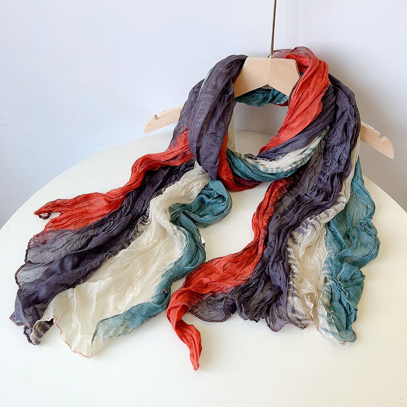 빈티지 플리츠 컬러 매칭 스카프 소프트 모든 매치 슬림 실크 스카프 여성의 가을과 겨울 따뜻한 목 보호 스카프 숄 2023