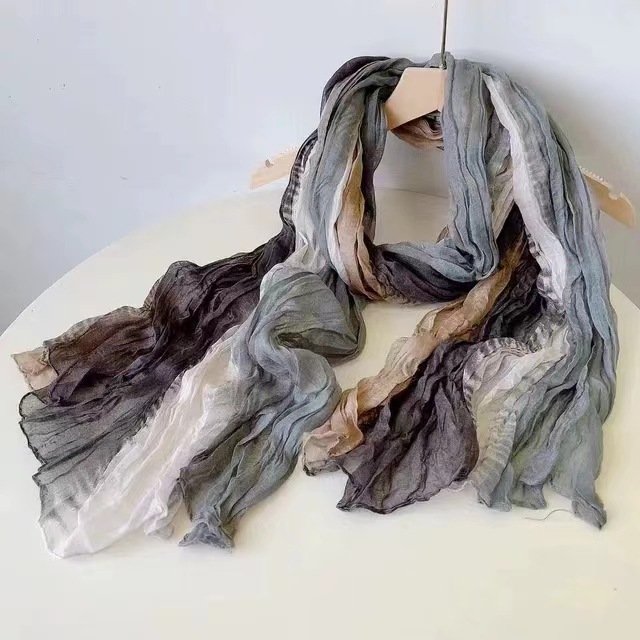 빈티지 플리츠 컬러 매칭 스카프 소프트 모든 매치 슬림 실크 스카프 여성의 가을과 겨울 따뜻한 목 보호 스카프 숄 2023스토어 가기
