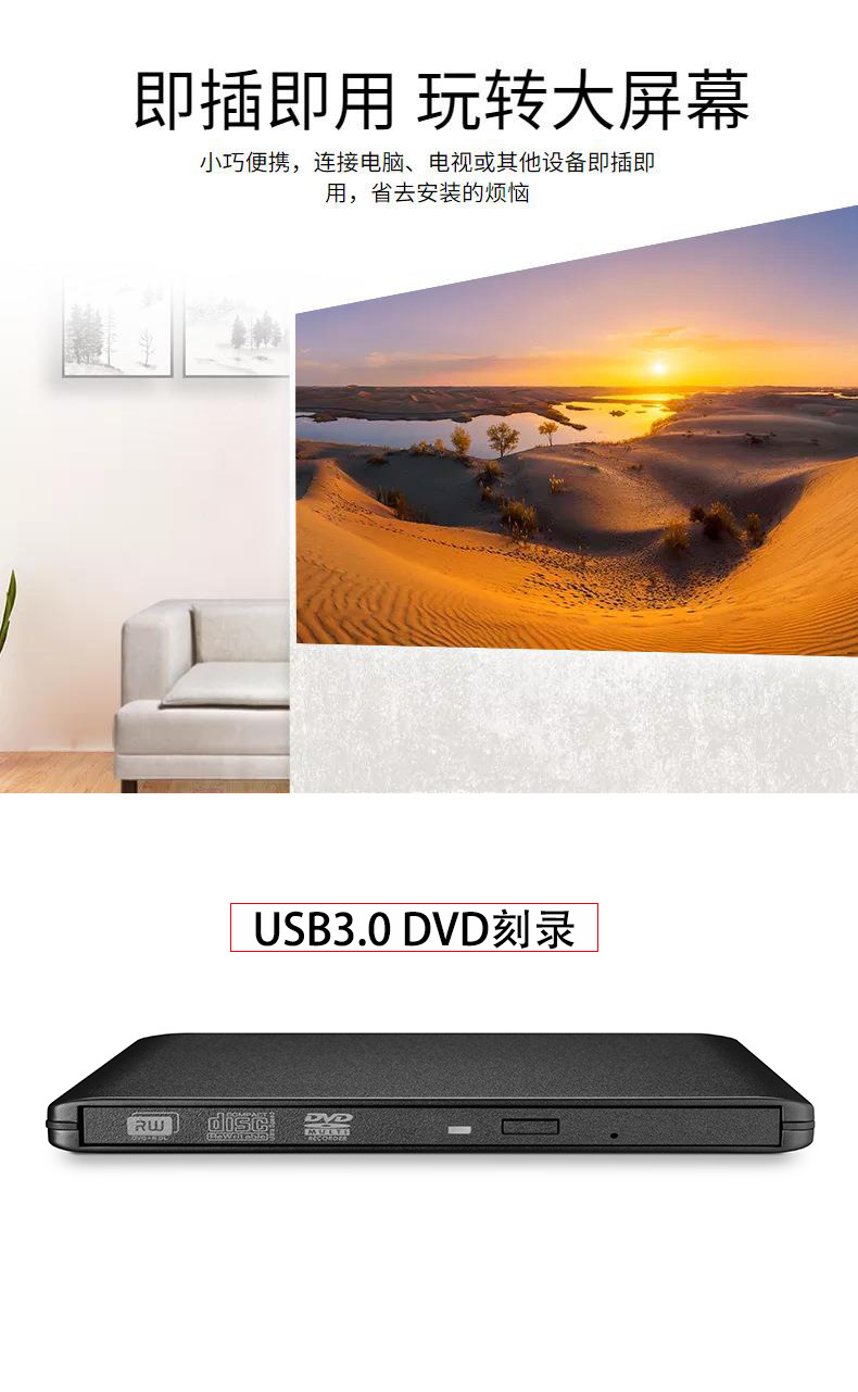 알루미늄 합금 검정 USB3.0 외부 광학 드라이브 DVD 버너 노트북 모바일 광학 드라이브 플러그 앤 플레이