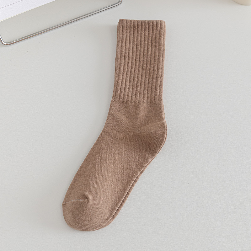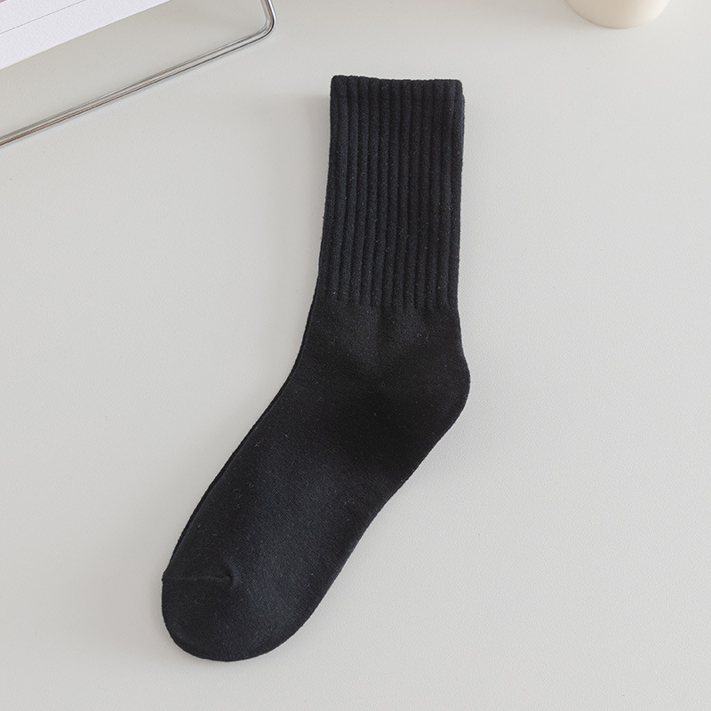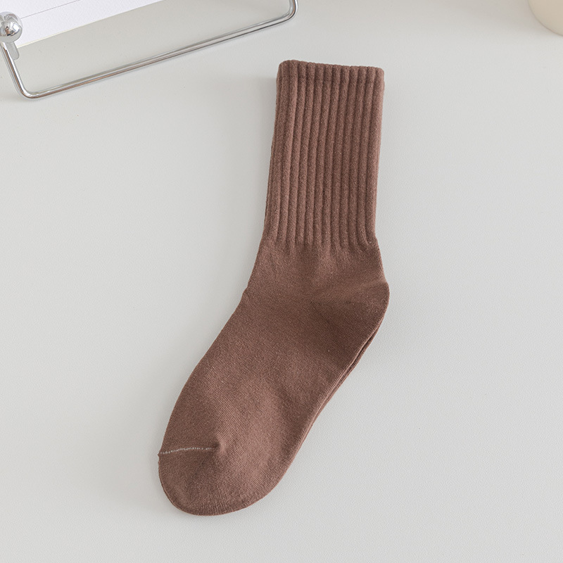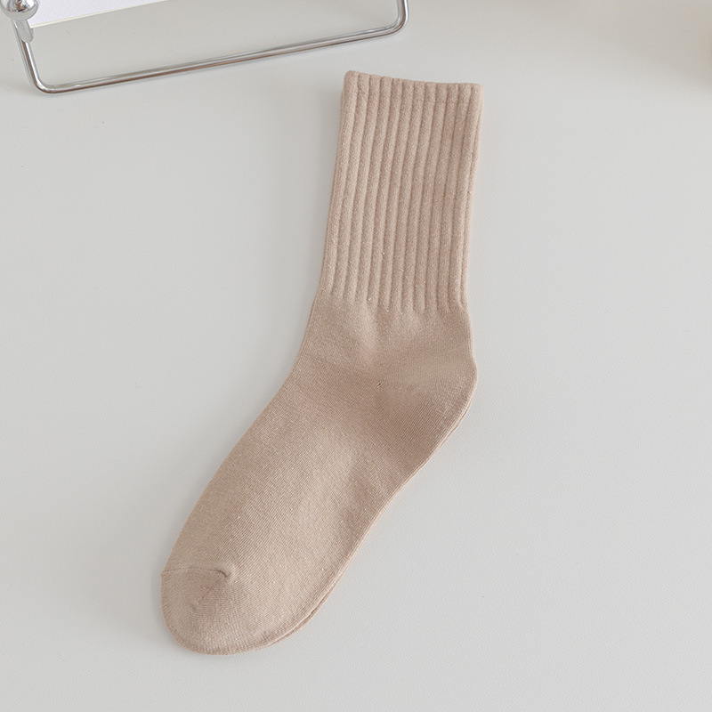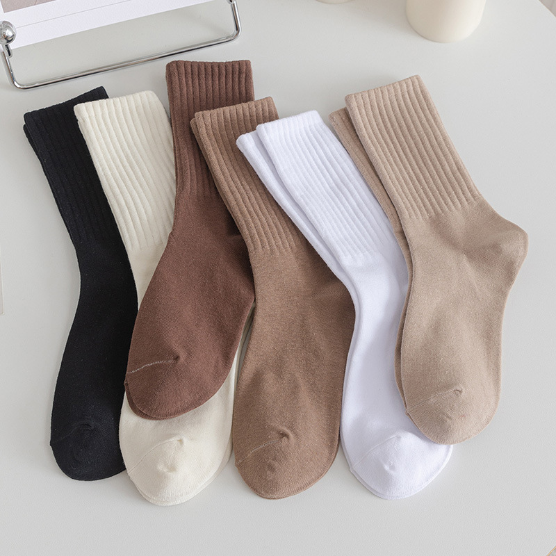 솔리드 컬러 미드 양말 여성용 코튼 가을 미드 양말 Ins 트렌디 한 간단한 일본 스포츠 양말 땀 흡수 코튼 양말