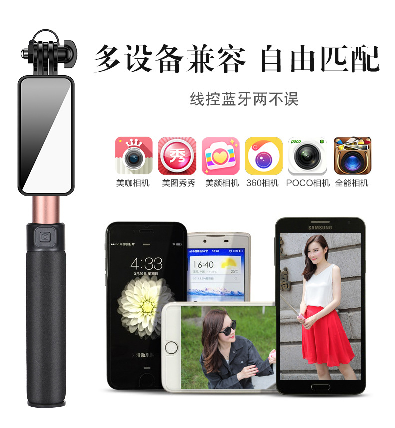 미니 알루미늄 합금 셀카 스틱 새로운 3 세대 셀카 스틱 와이어 제어 접이식 텔레스코픽 휴대용 셀카 스틱 유니버설스토어 가기