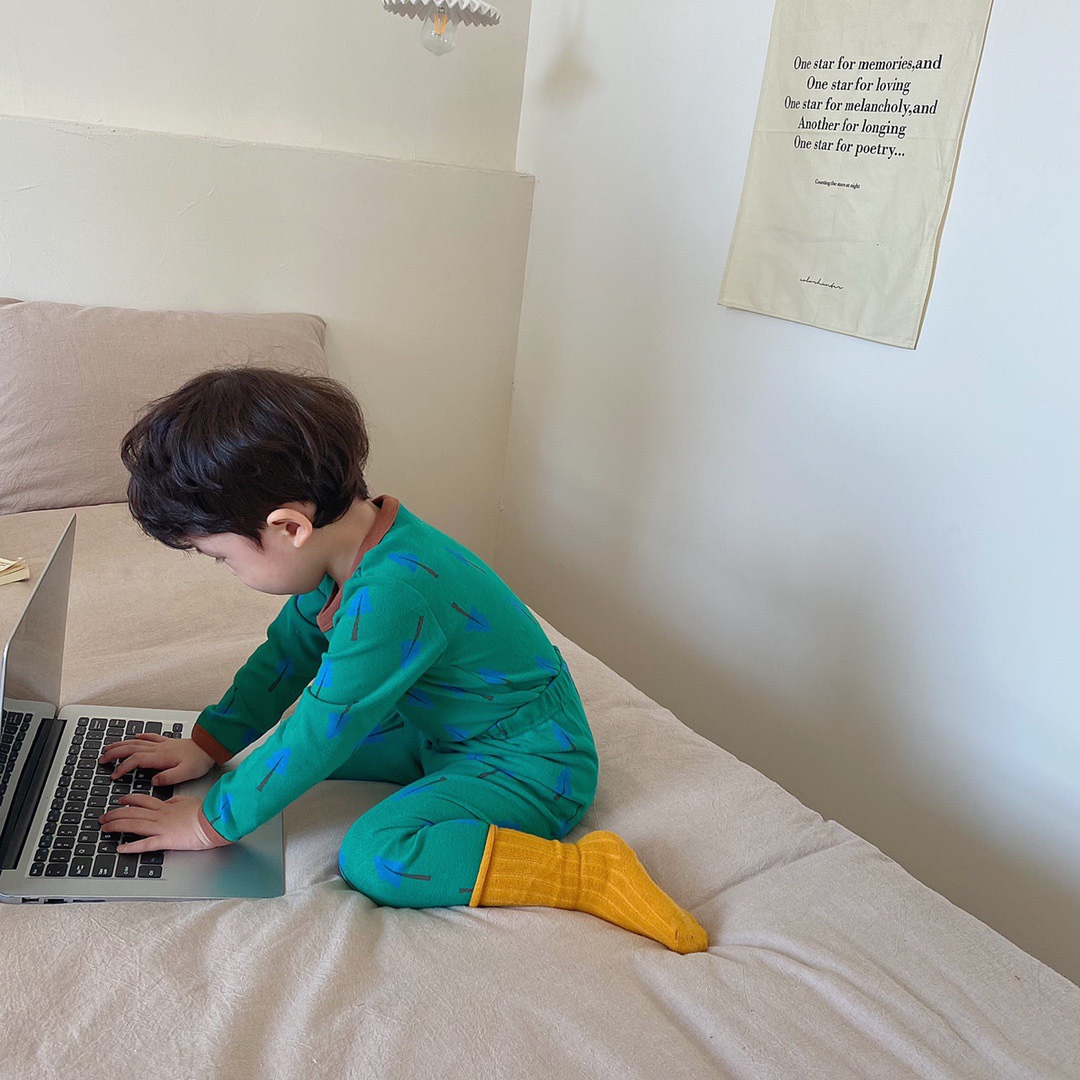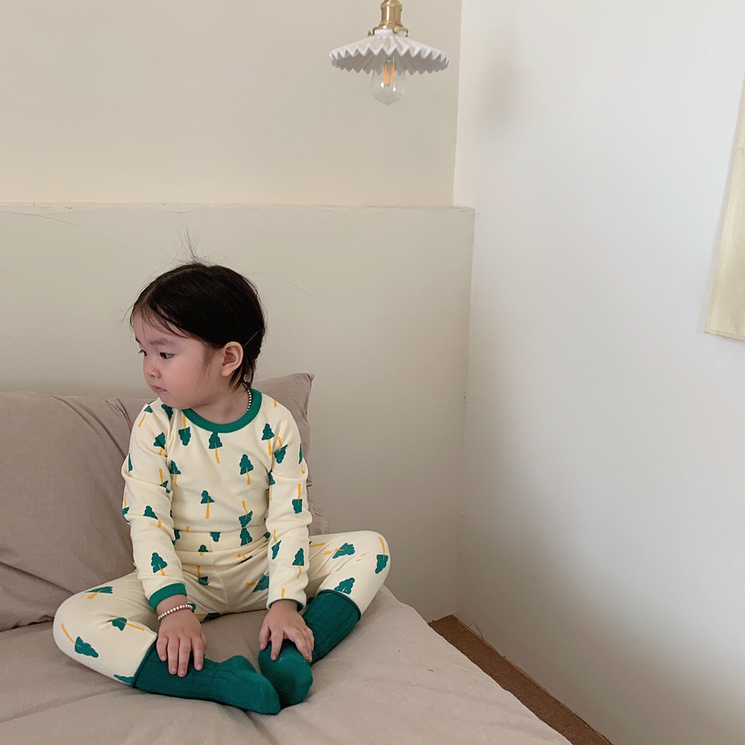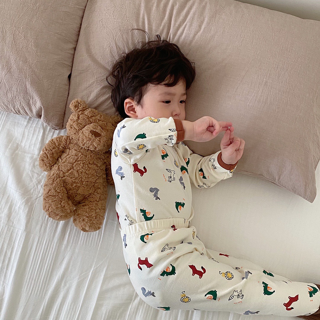 봄과 가을 한국 스타일 면 어린이 잠옷 어린이 만화 캐주얼 가정 의류 세트 남성과 여성의 기본 아기 속옷스토어 가기