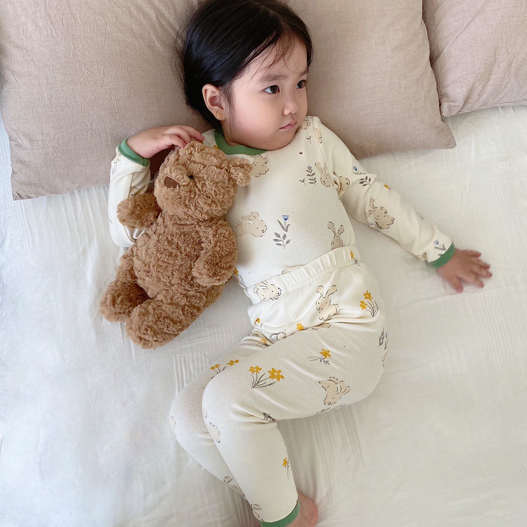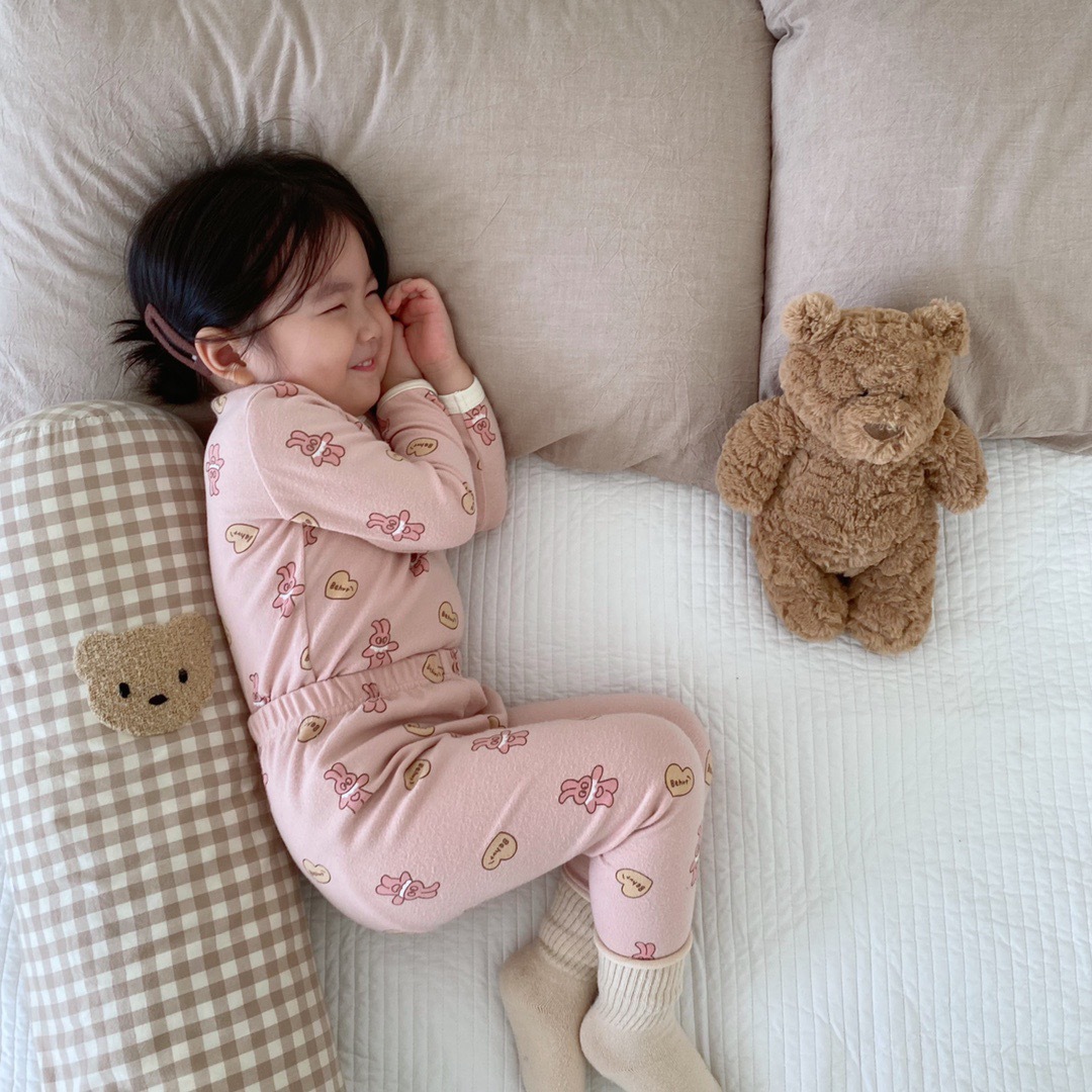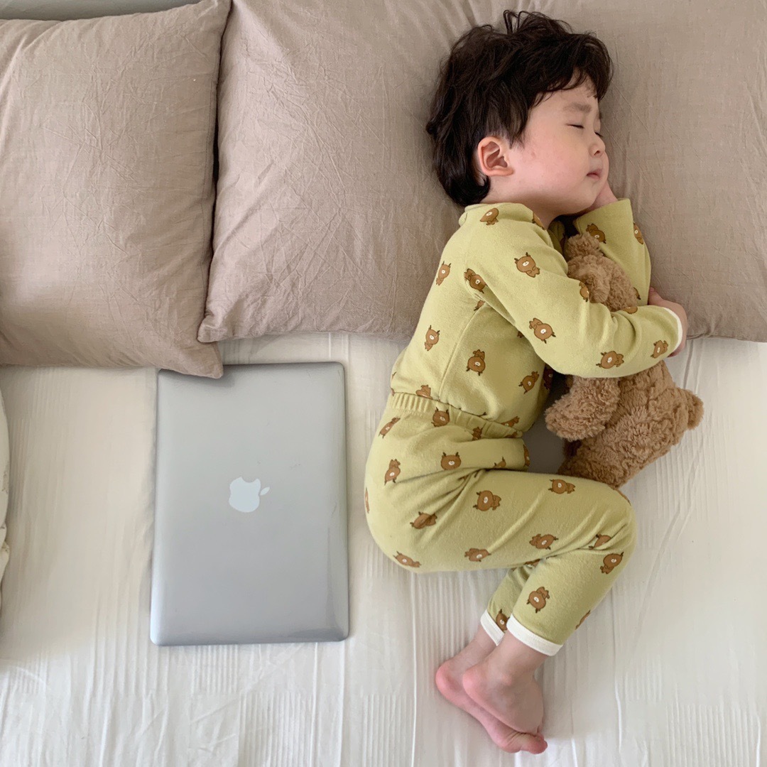 봄과 가을 한국 스타일 면 어린이 잠옷 어린이 만화 캐주얼 가정 의류 세트 남성과 여성의 기본 아기 속옷스토어 가기