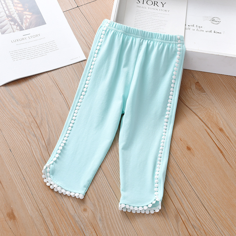 • X8141 밝은 시안 레이스 헴 크롭 바지
