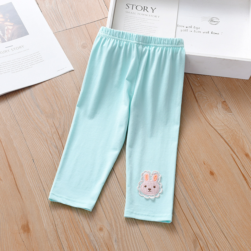 • X8139 밝은 시안 자수 토끼 머리 자른 바지