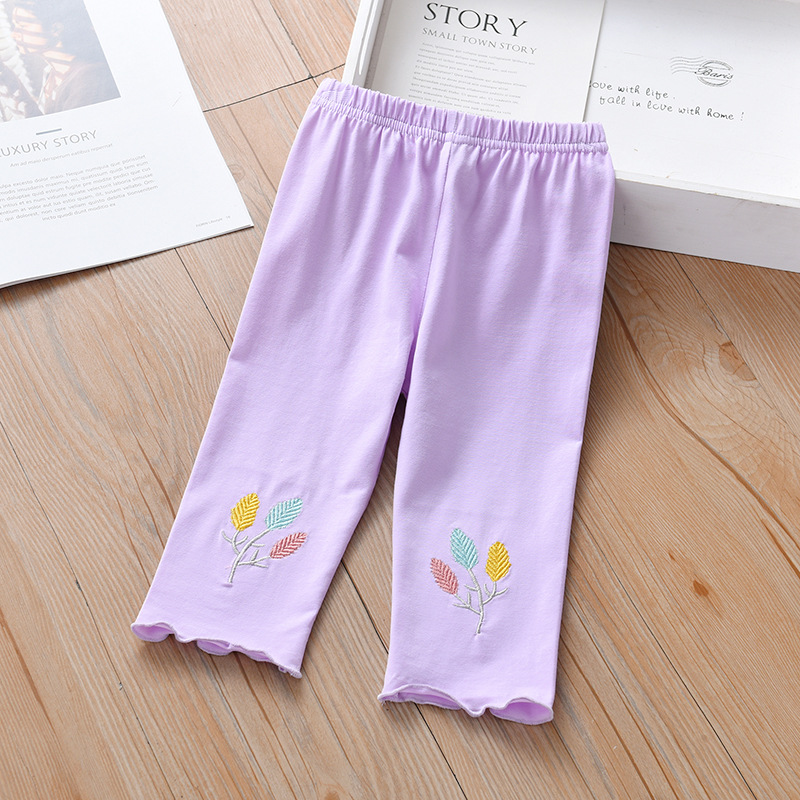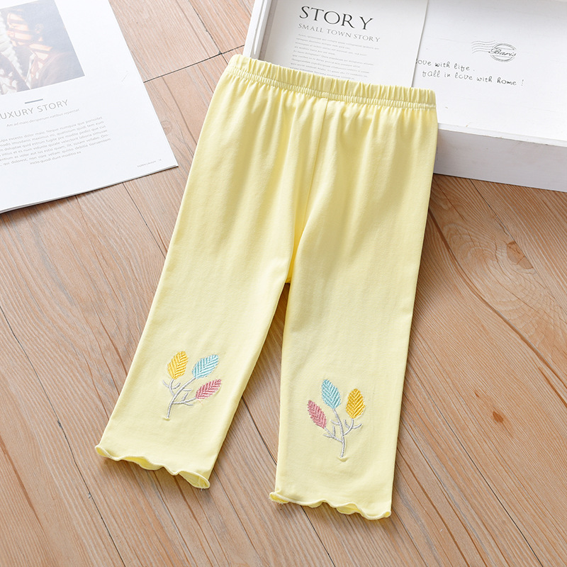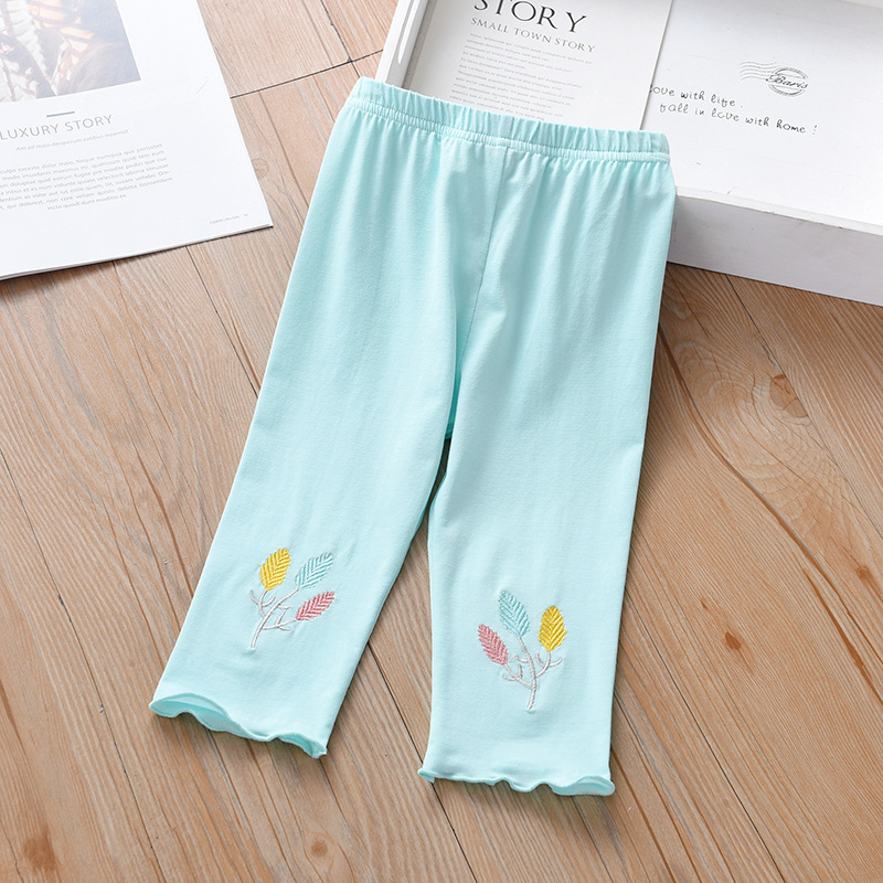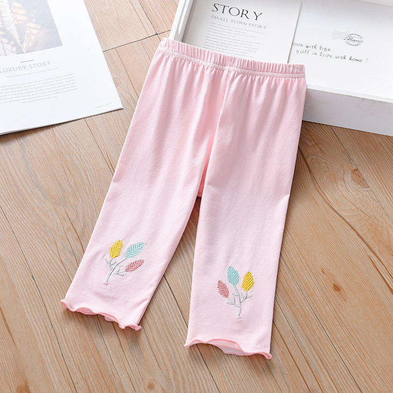 소녀의 여름 얇은 바지 아기 소녀의 다재다능한 캐주얼 반바지 2022 새로운 아동복 자수 겉옷 자른 바지