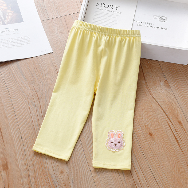 • X8139 노란색 자수 토끼 머리 자른 바지