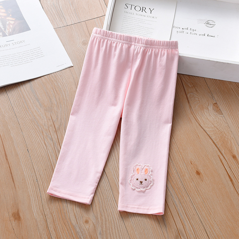 • X8139 핑크 수 놓은 토끼 머리 자른 바지