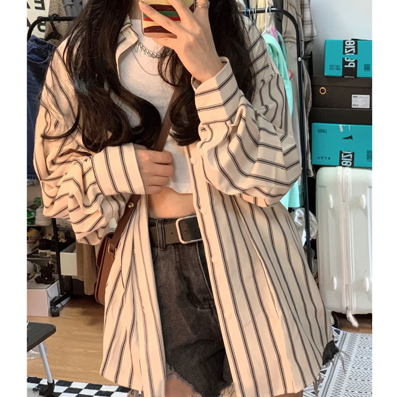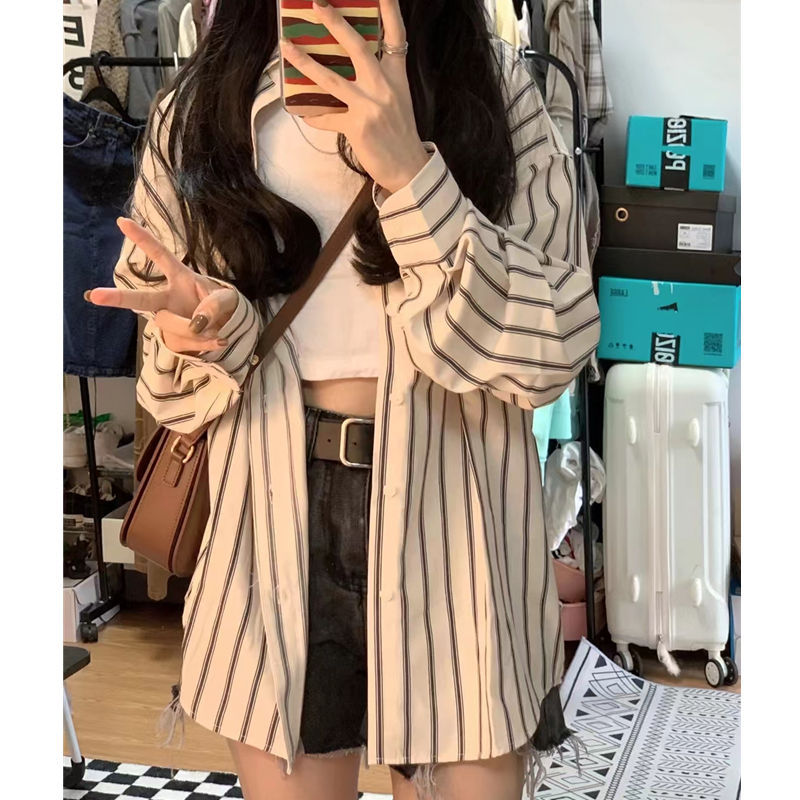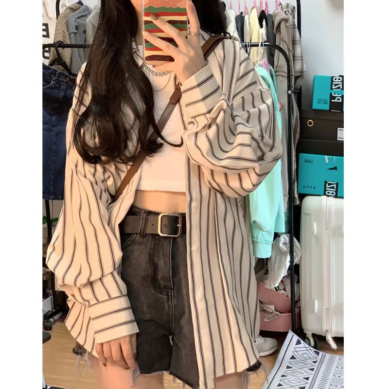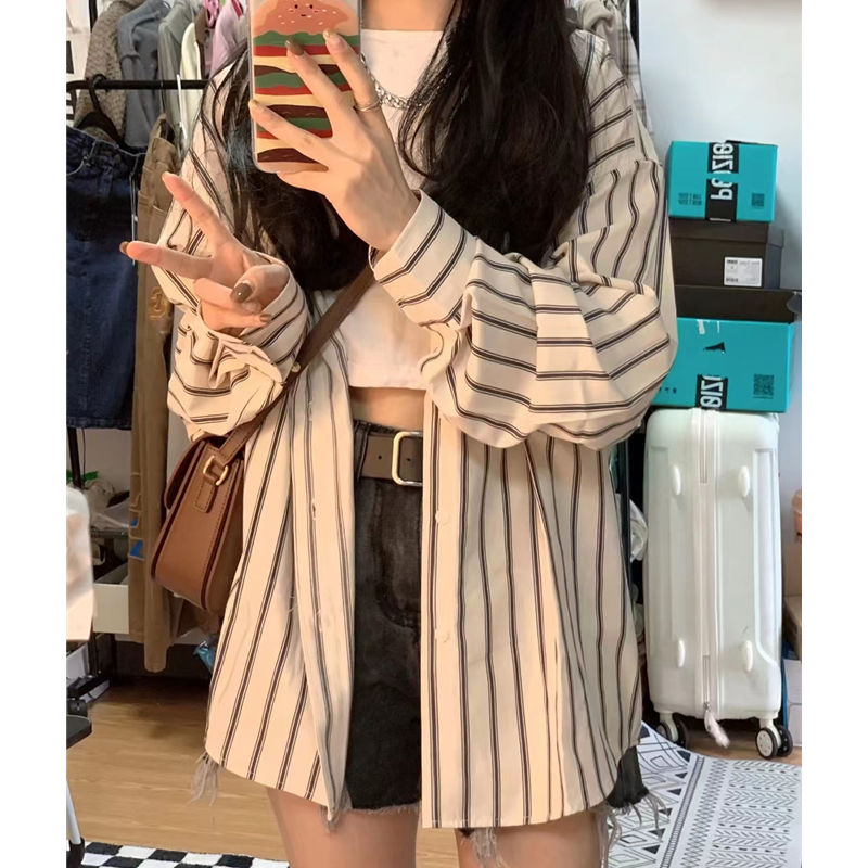 스트라이프 셔츠 여성용 디자인 센스 틈새 2022 봄과 여름 신입 여학생 한국 스타일 느슨한 긴팔 재킷 셔츠 여성용스토어 가기