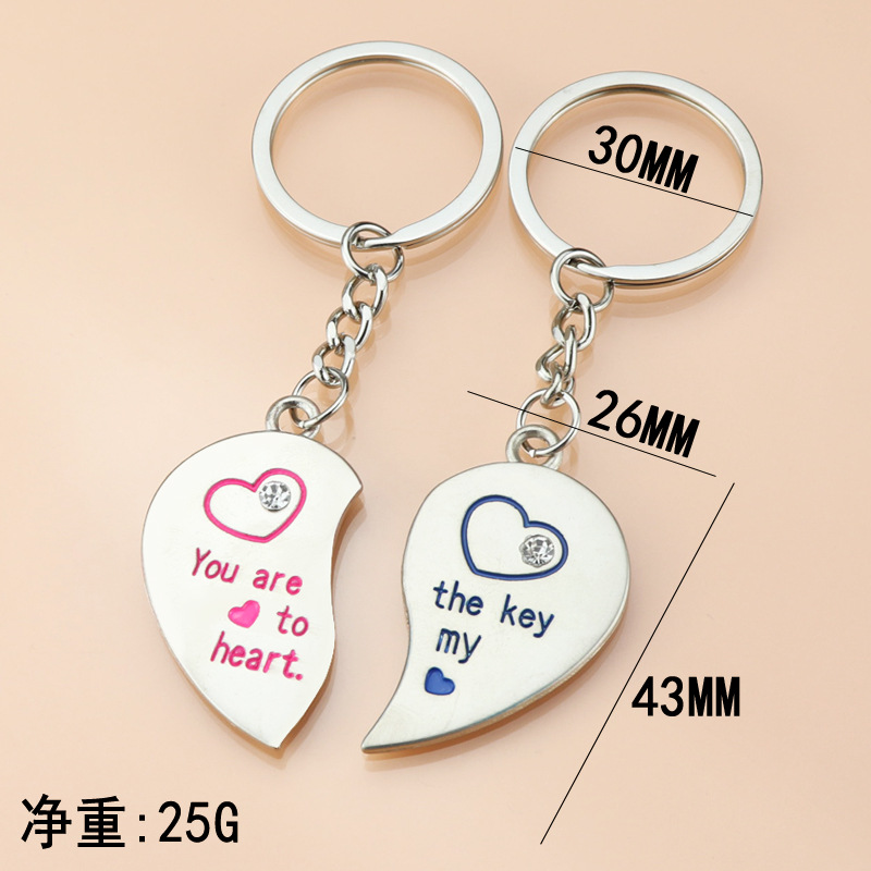 창의적인 흑백 하트 모양 열쇠고리, 사랑 열쇠고리, 트렌디한 남녀 공용 작은 선물, 조합된 하트 모양 열쇠고리