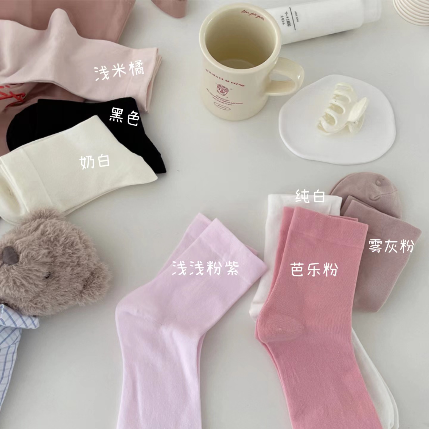 여성 한국 유행 양말 단색 핑크 우유 흰색 양말면 중간 종아리 양말 기본 대학 스타일 여성 양말 사카사카 지우스토어 가기