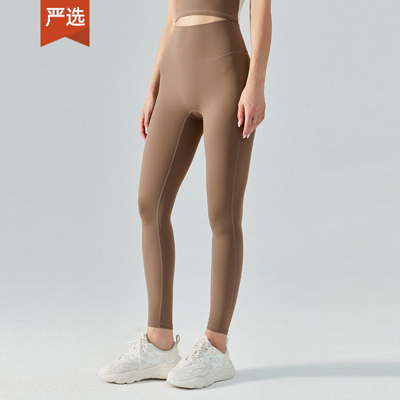 찹쌀 부드러운 알몸 양면 고급 샌딩 요가 바지 없음 T-힙 하이 웨이스트 달리기 속건 타이트 피트니스 바지