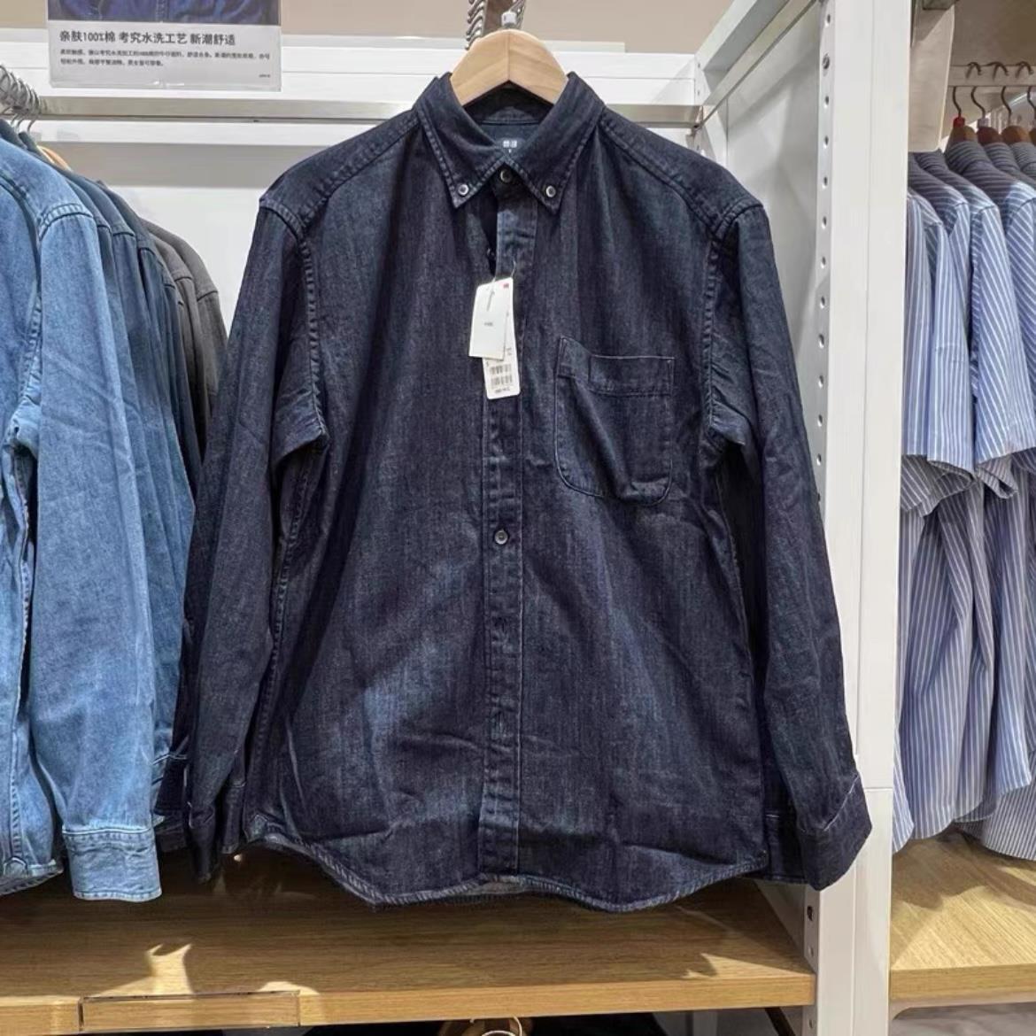 피팅룸 남자/여자 22 가을 캐주얼 버튼 데님 셔츠 워싱 긴 소매 코트 447006/450262