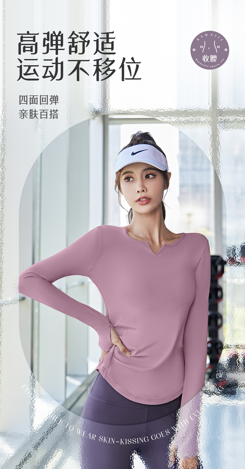 주이탕 단색 브이넥 주름 스포츠 긴팔 허리 슬림 요가복 여성 타이트 요가 탑스토어 가기