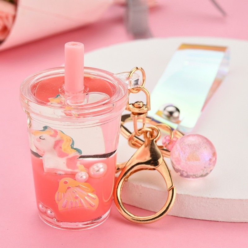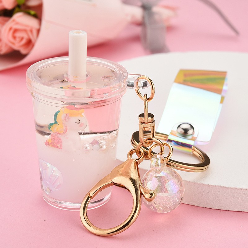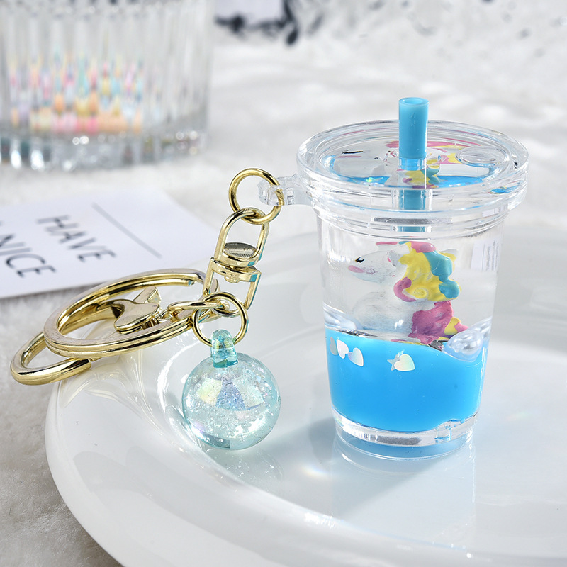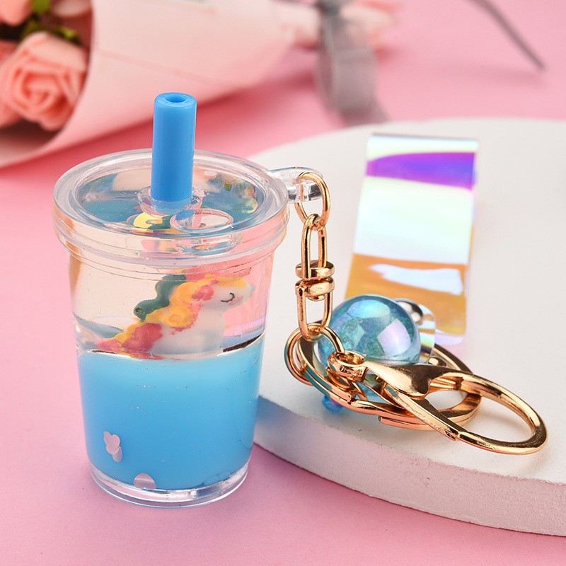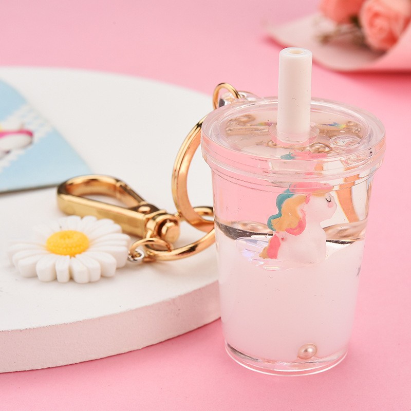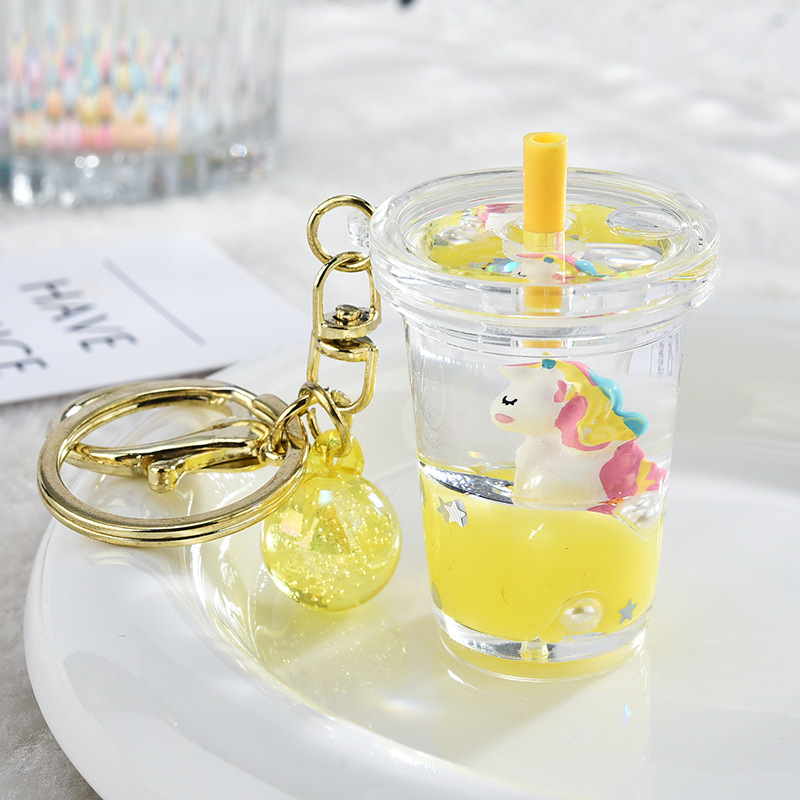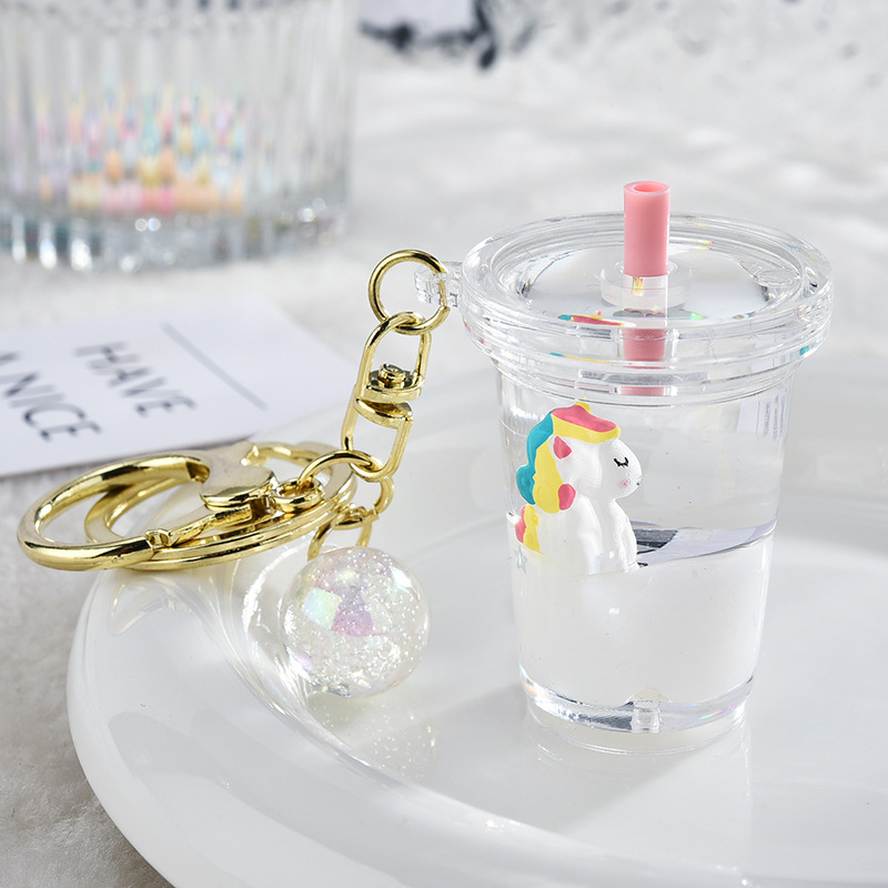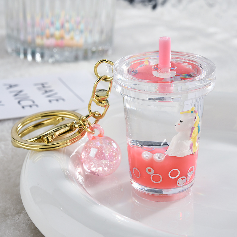 오일 유니콘 밀크 티 컵 키 체인 자동차 키 여자 가방 펜던트 유사 키 체인 배낭 펜던트