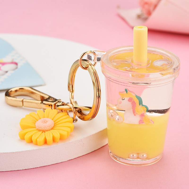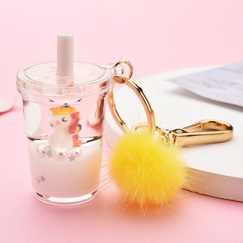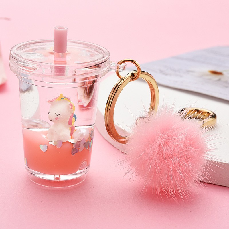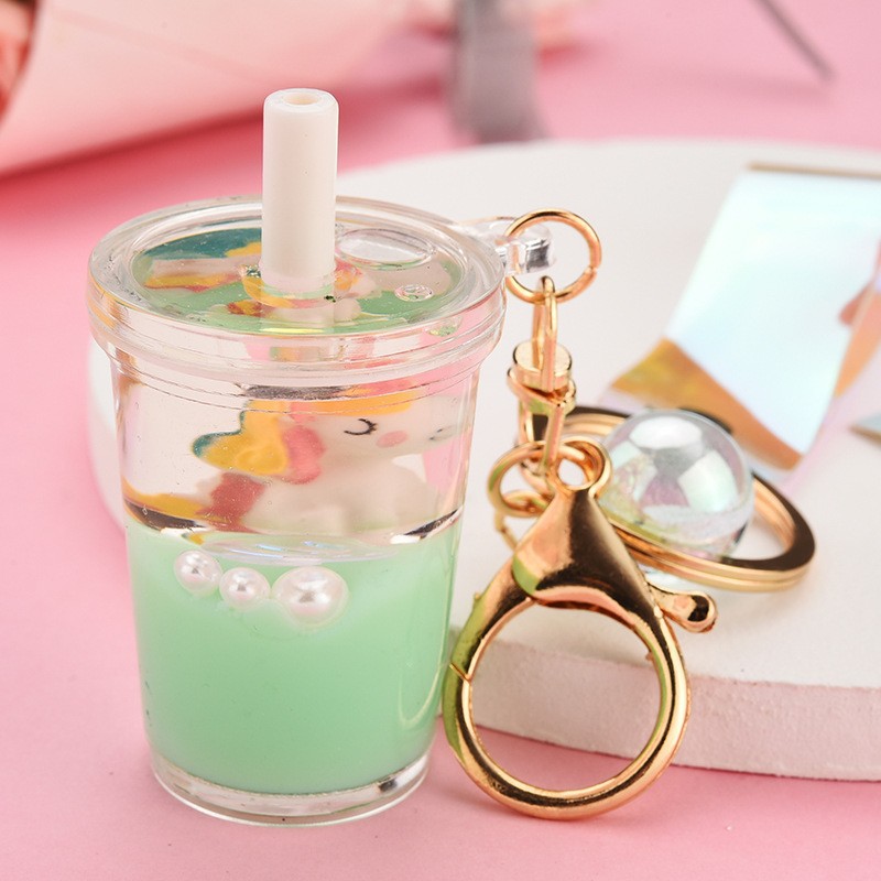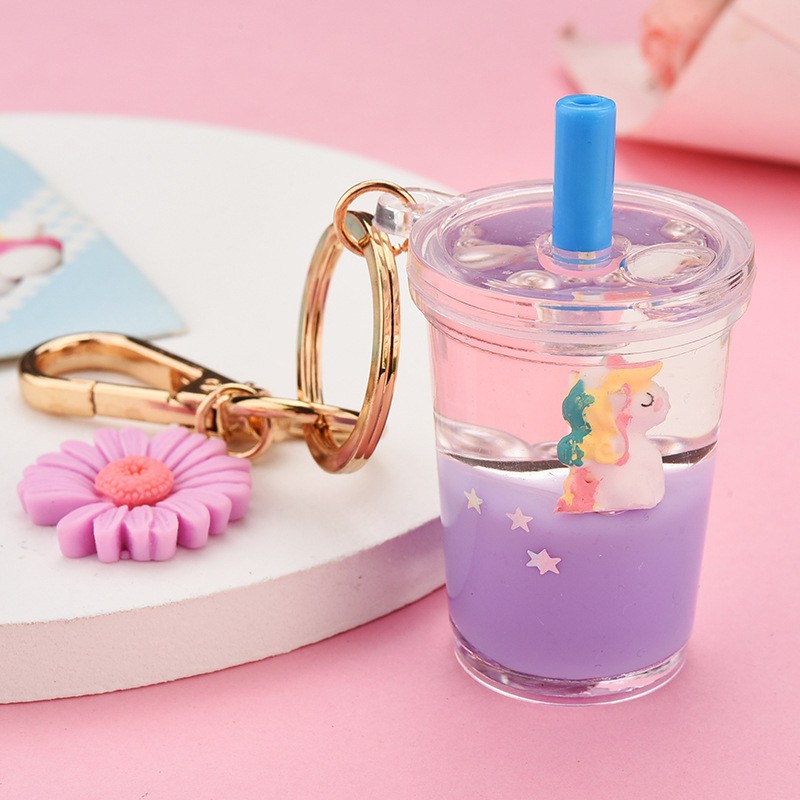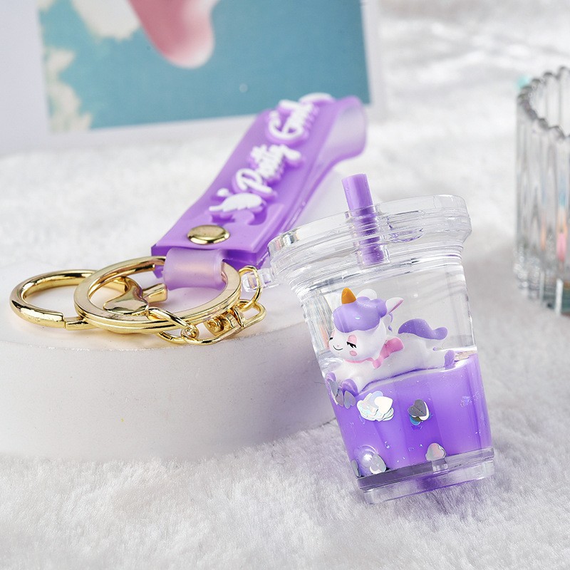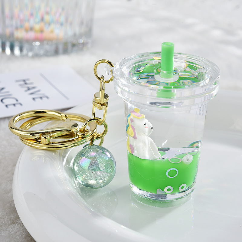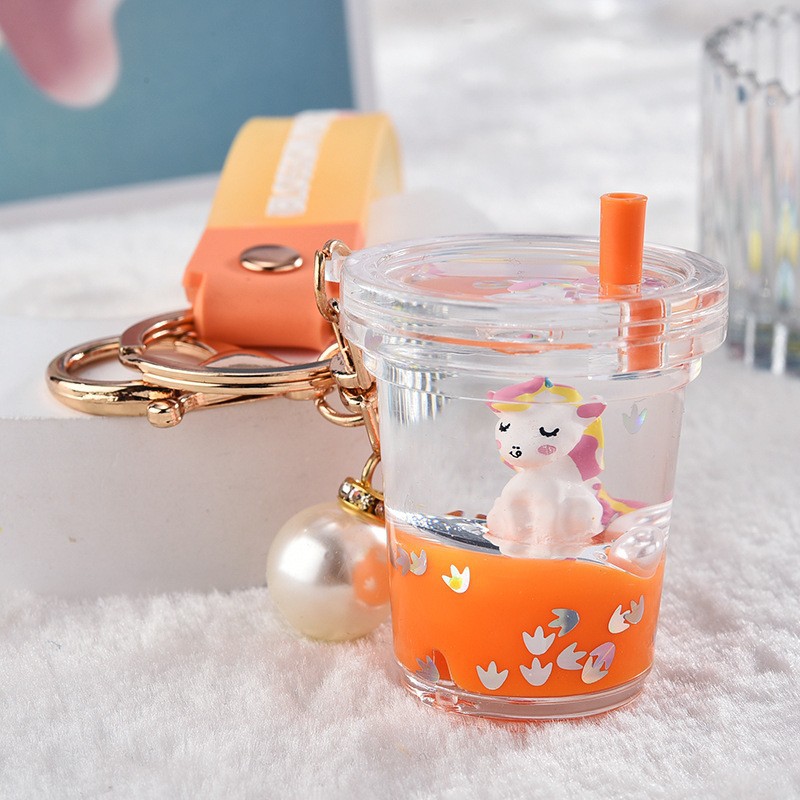 오일 유니콘 밀크 티 컵 키 체인 자동차 키 여자 가방 펜던트 유사 키 체인 배낭 펜던트