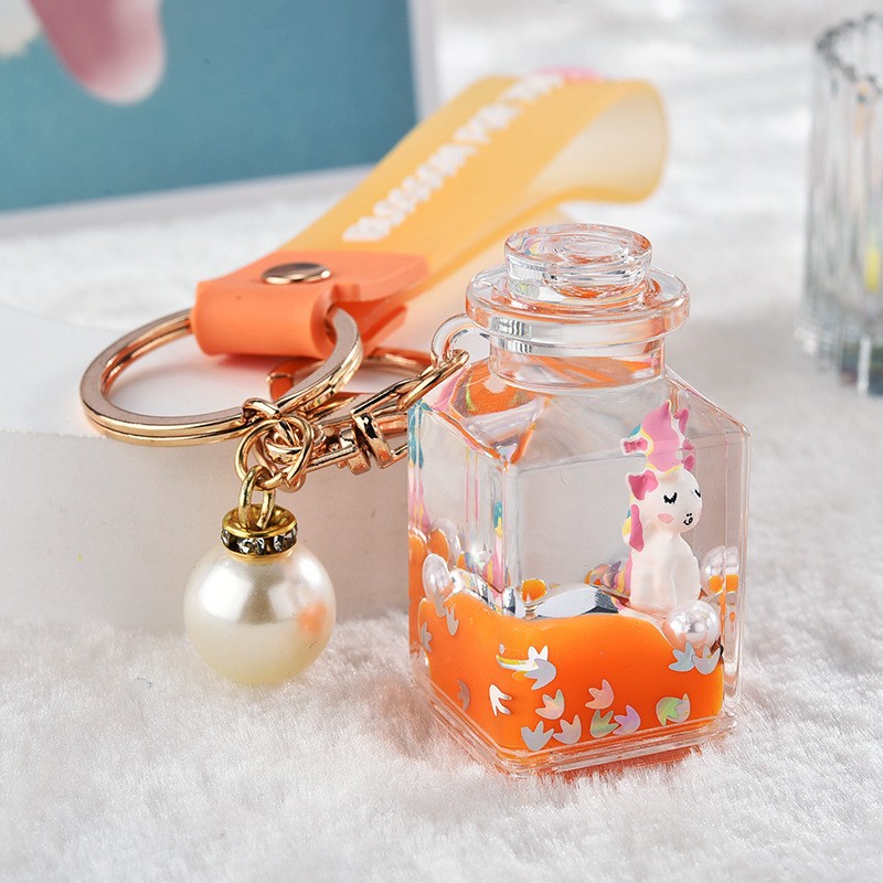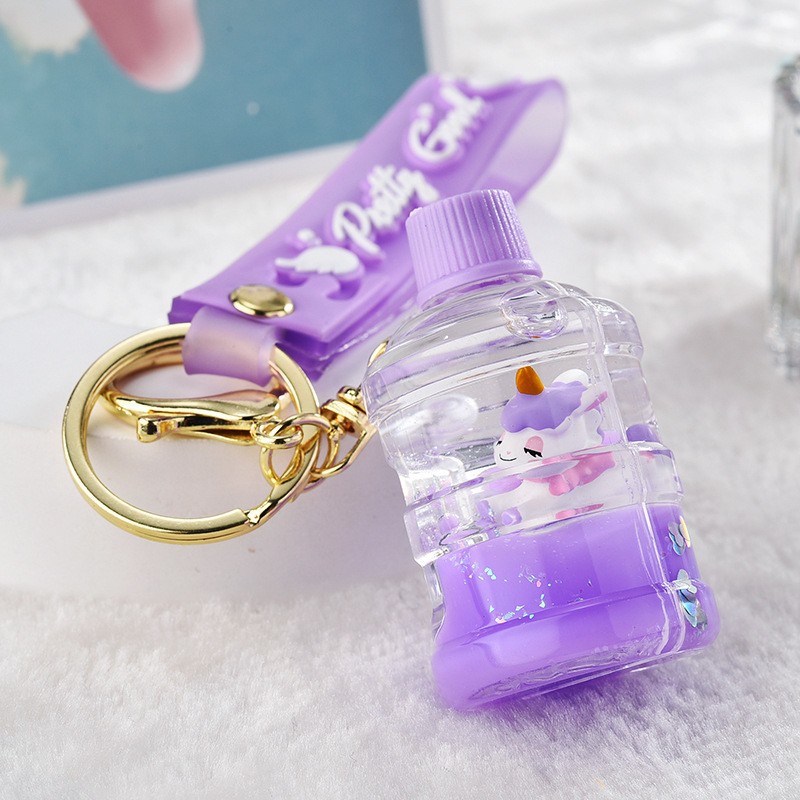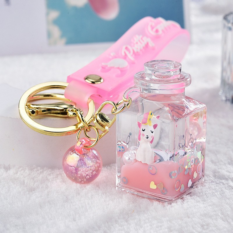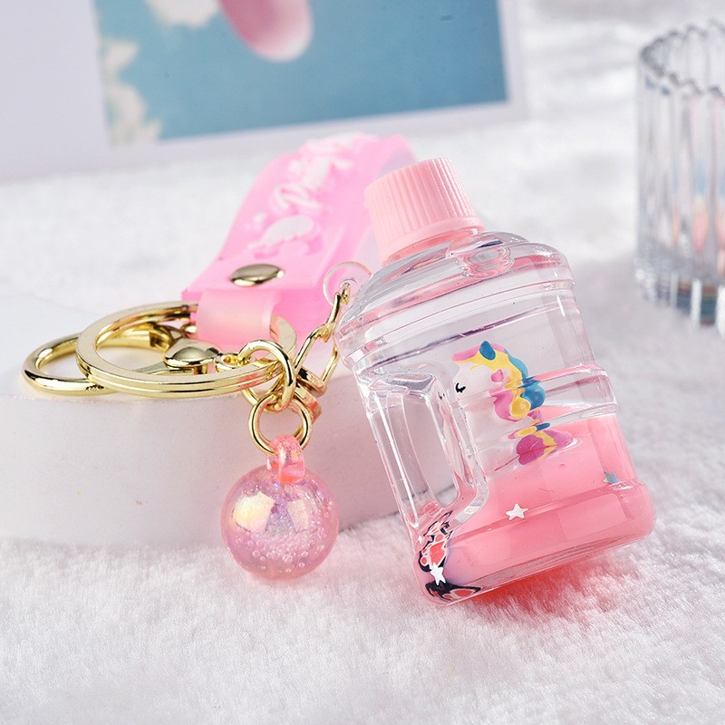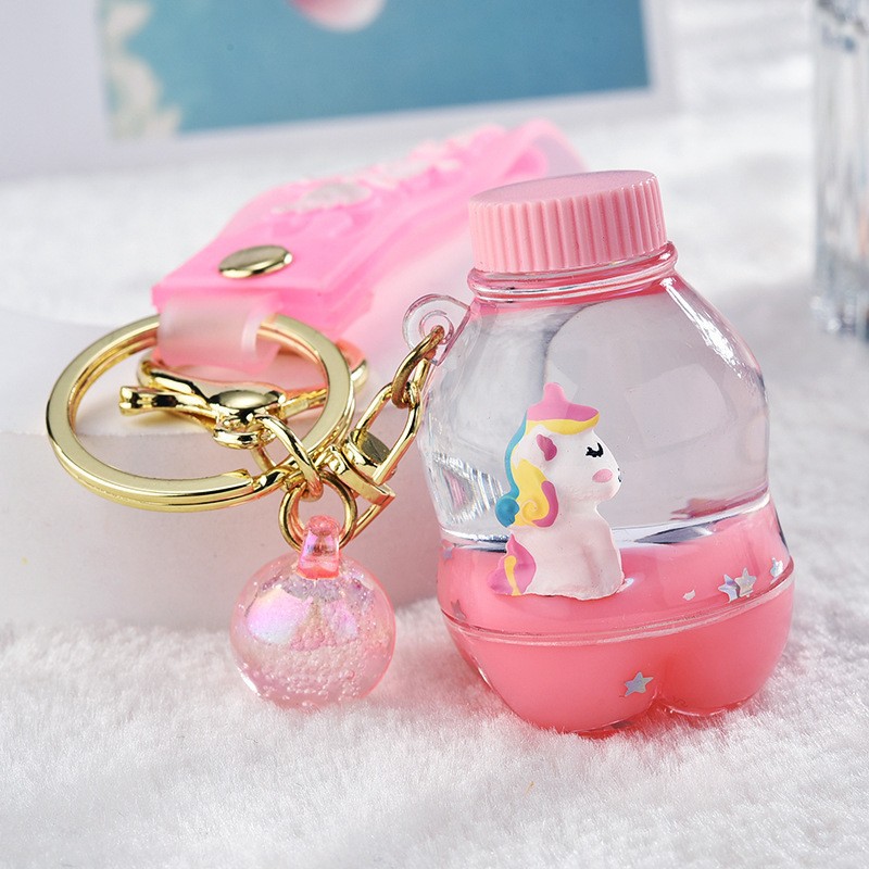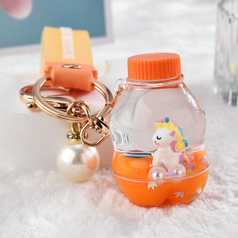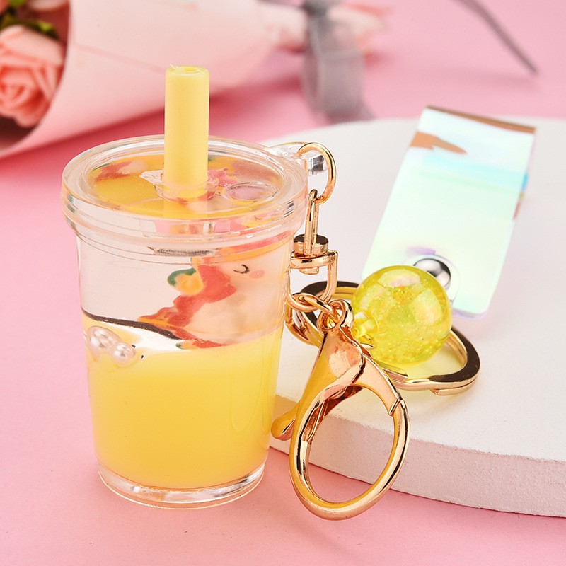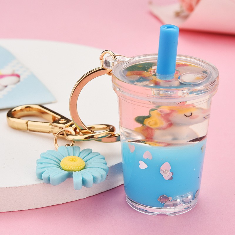 오일 유니콘 밀크 티 컵 키 체인 자동차 키 여자 가방 펜던트 유사 키 체인 배낭 펜던트