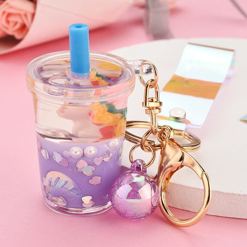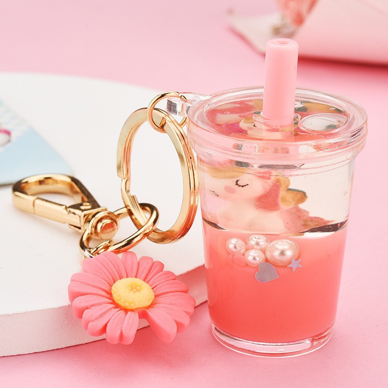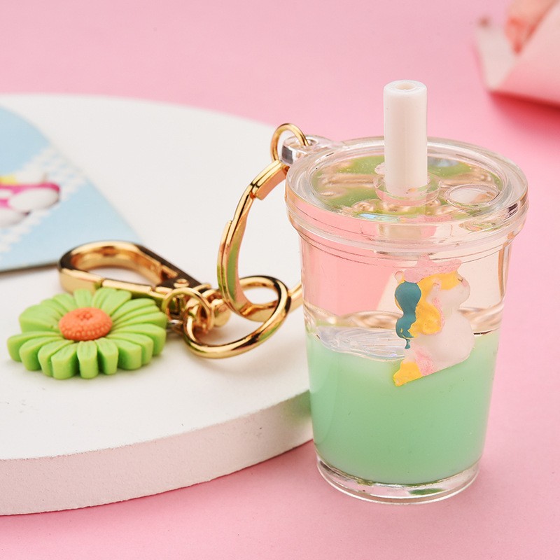 오일 유니콘 밀크 티 컵 키 체인 자동차 키 여자 가방 펜던트 유사 키 체인 배낭 펜던트스토어 가기