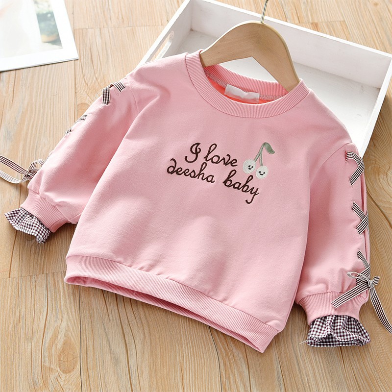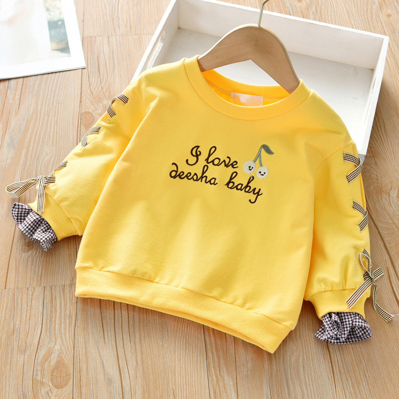 소녀 스웨터 봄과 가을 어린이 유행 2022 새 수 놓은 긴팔 셔츠 어린이 공주 둥근 목 풀오버