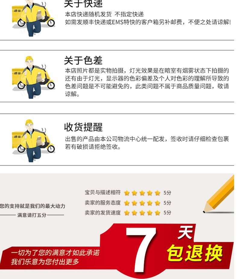 注:非质量原因或特殊情况影响二次销售的产品不给予退换