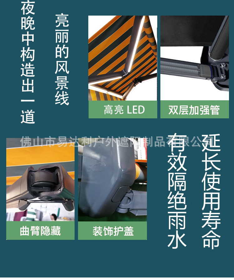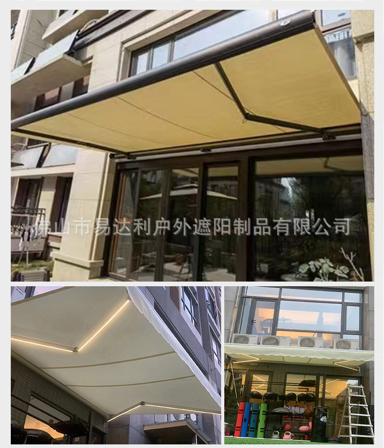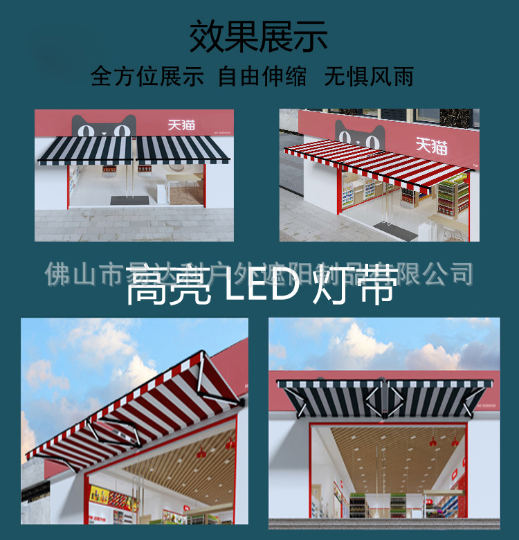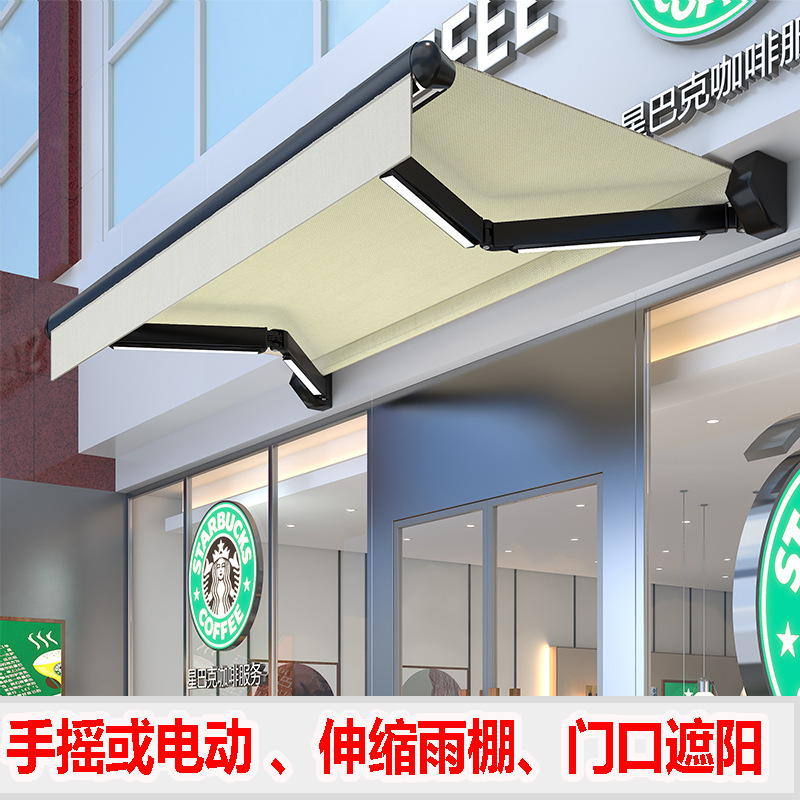 조명이 있는 접이식 수동식 상점 야외 발코니 원격 제어 텐트 자외선 차단 전동 차양막 접이식 우산형 차양막스토어 가기
