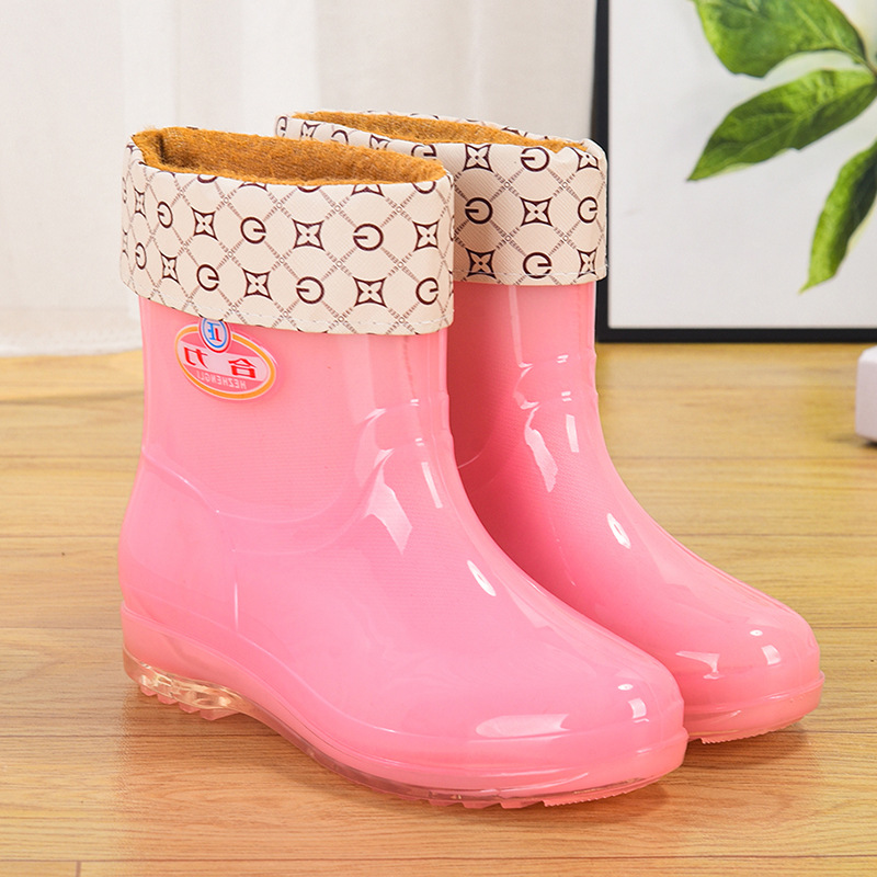 미끄럼 방지 짧은 튜브 고무 신발 비 신발 여성용 여름 고무 장화 젤리 방수 신발 투명 중간 튜브 사이버 연예인 플라스틱 세탁 신발스토어 가기