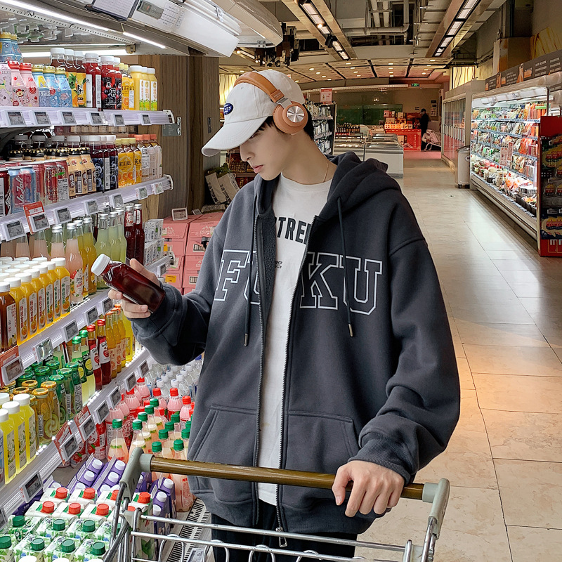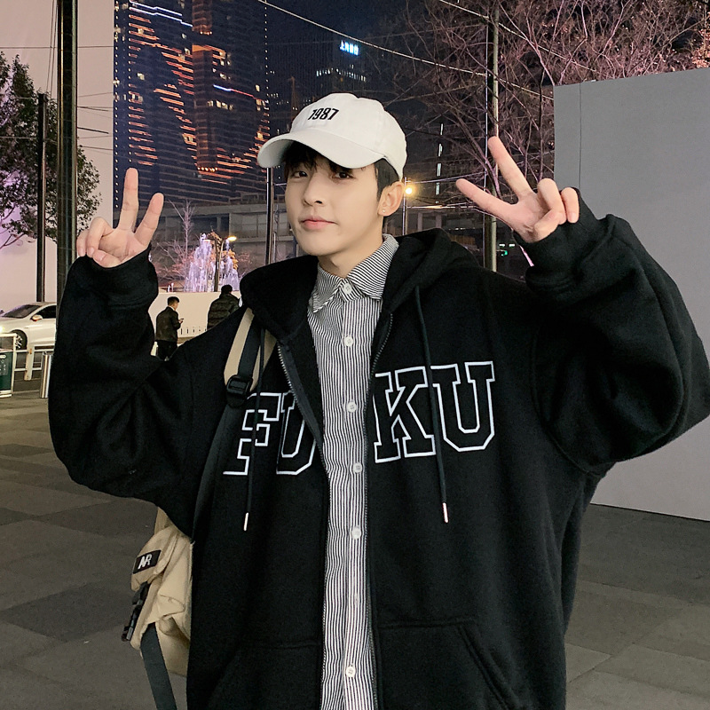 아메리칸 스타일 슈퍼 인기 가디건 스웨터 남자의 가을과 겨울 유행 커플 roora 유행 모든 매치 느슨한 후드 재킷스토어 가기