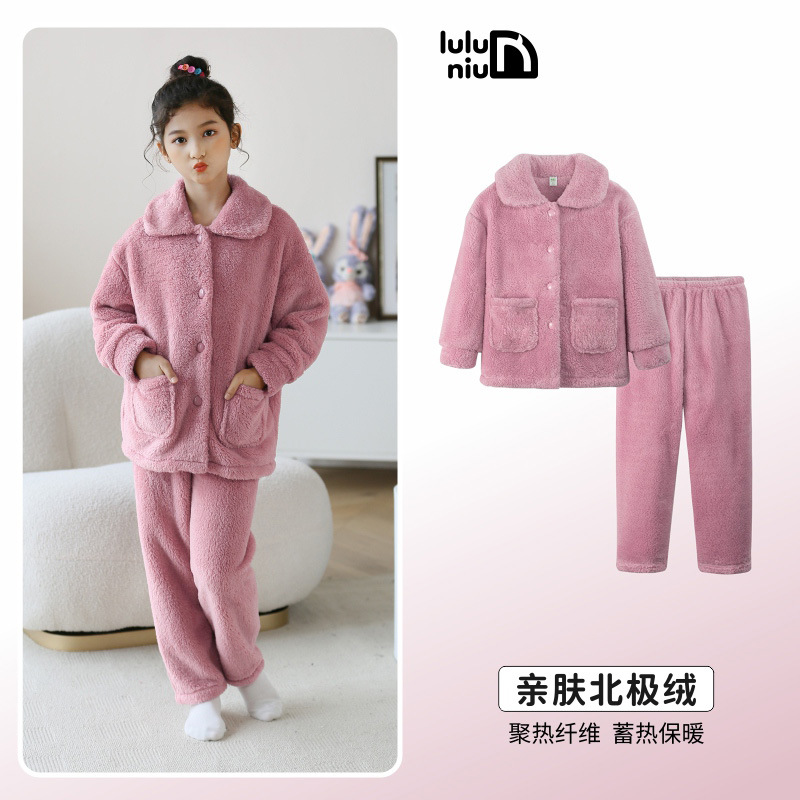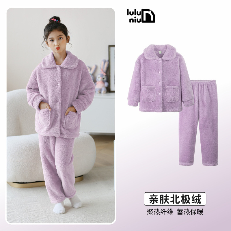 Lulu Niu 2022 가을과 겨울 어린이 잠옷 소녀 산호 양털 두꺼운 어린이 봄과 가을 소녀 가정복