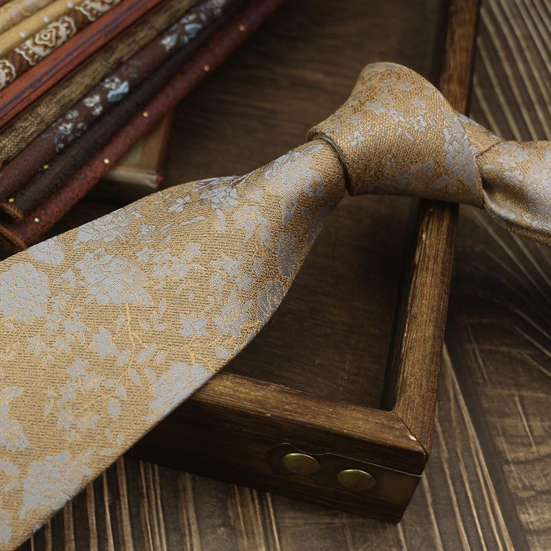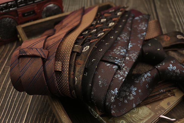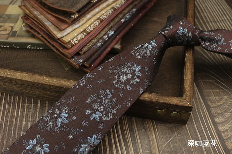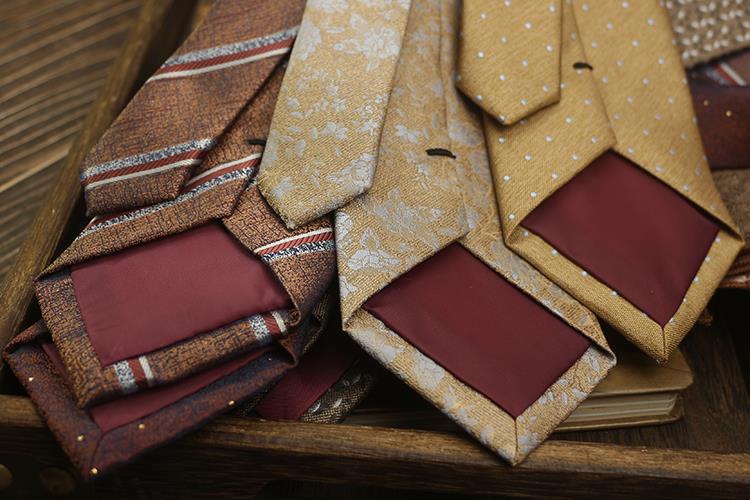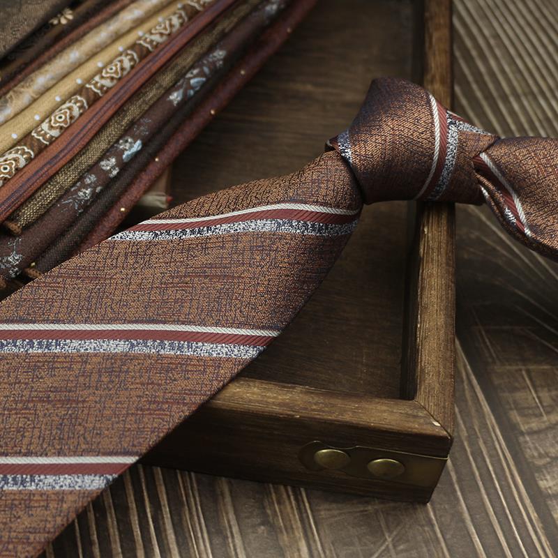 새로운 남자의 넥타이 복고풍 다크 브라운 다크 브라운 레드 영국 8cm 공식 원피스 전문 비즈니스 손 블루 스트라이프 다크 골드 패턴스토어 가기