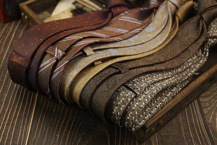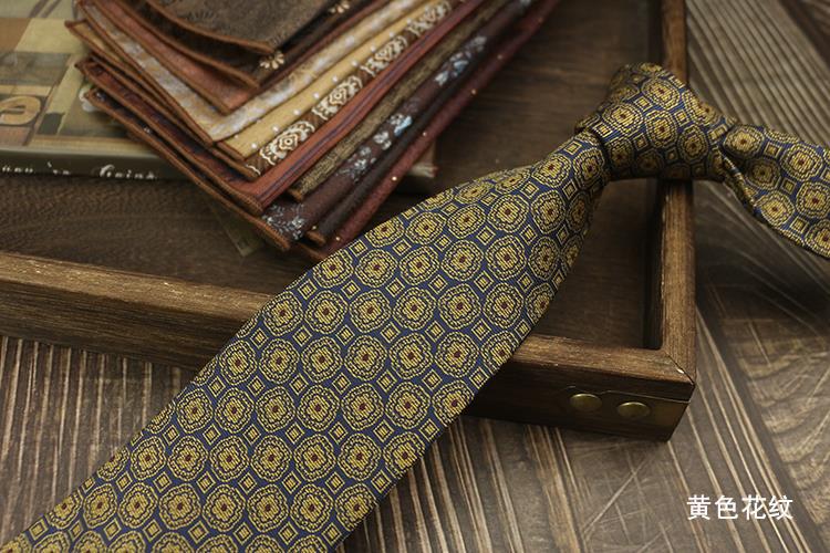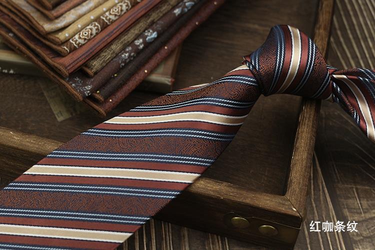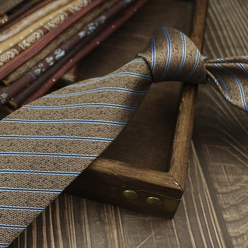 새로운 남자의 넥타이 복고풍 다크 브라운 다크 브라운 레드 영국 8cm 공식 원피스 전문 비즈니스 손 블루 스트라이프 다크 골드 패턴
