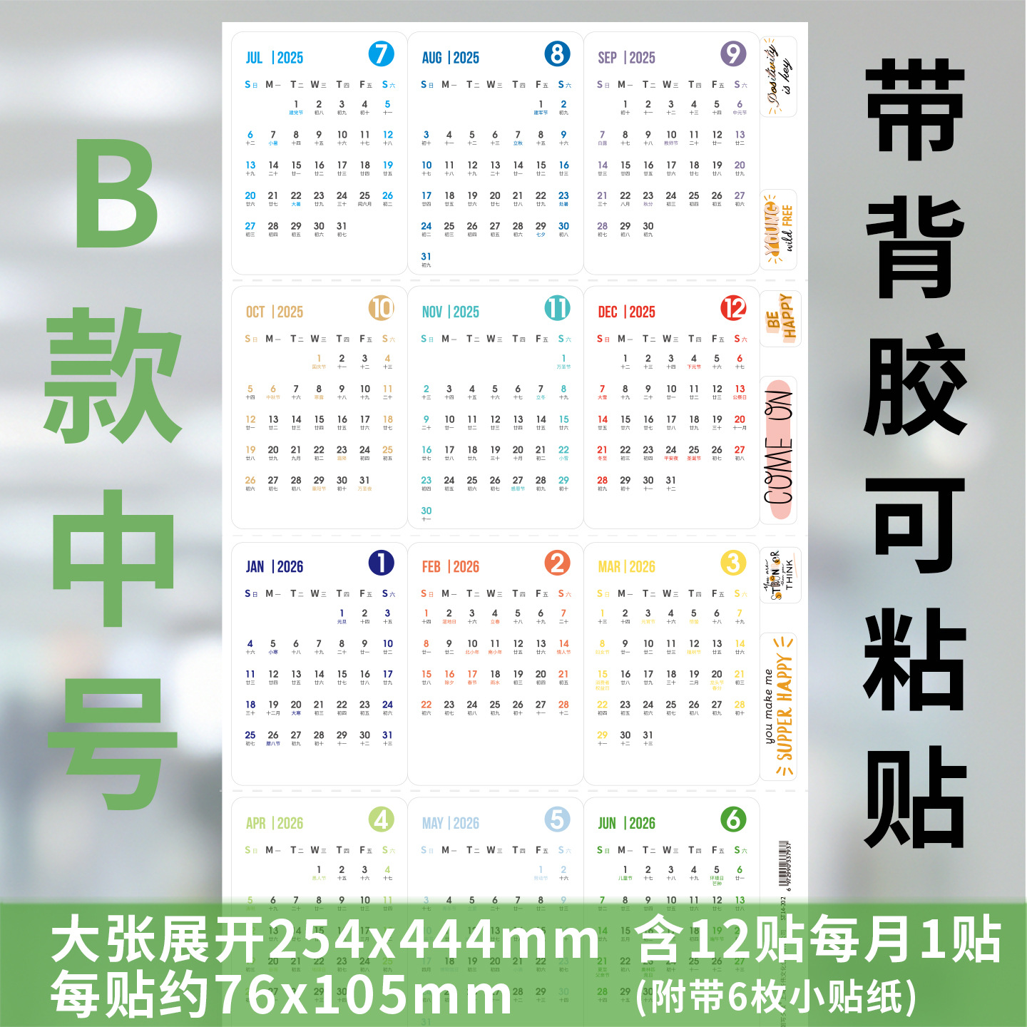 2025-2026 달력 스티커 필기 용지 ins 스타일 크리에이티브 DIY 책상 달력 월간 달력 자체 접착 핸드북 스티커스토어 가기