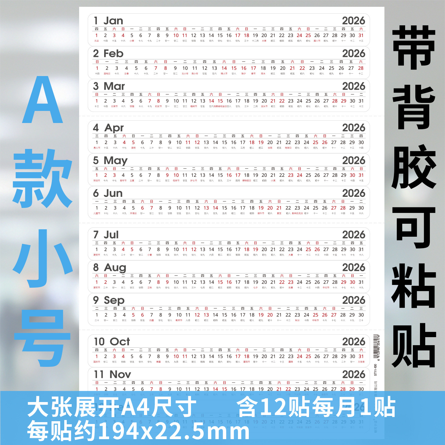 2025-2026 달력 스티커 필기 용지 ins 스타일 크리에이티브 DIY 책상 달력 월간 달력 자체 접착 핸드북 스티커