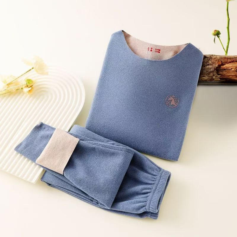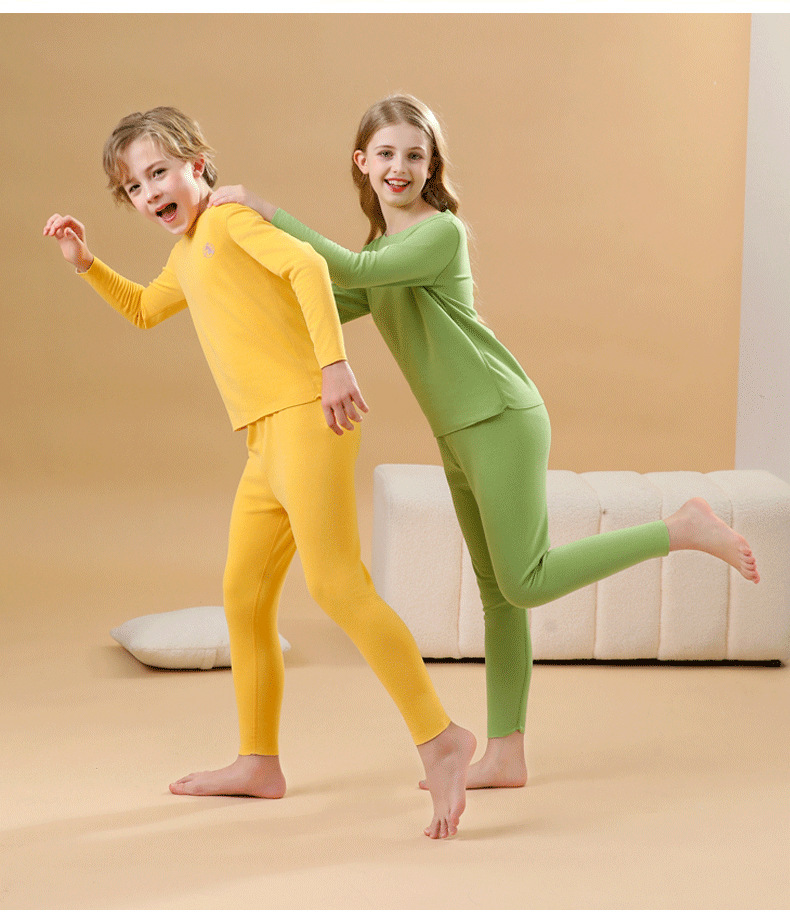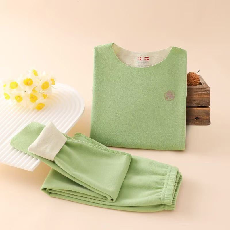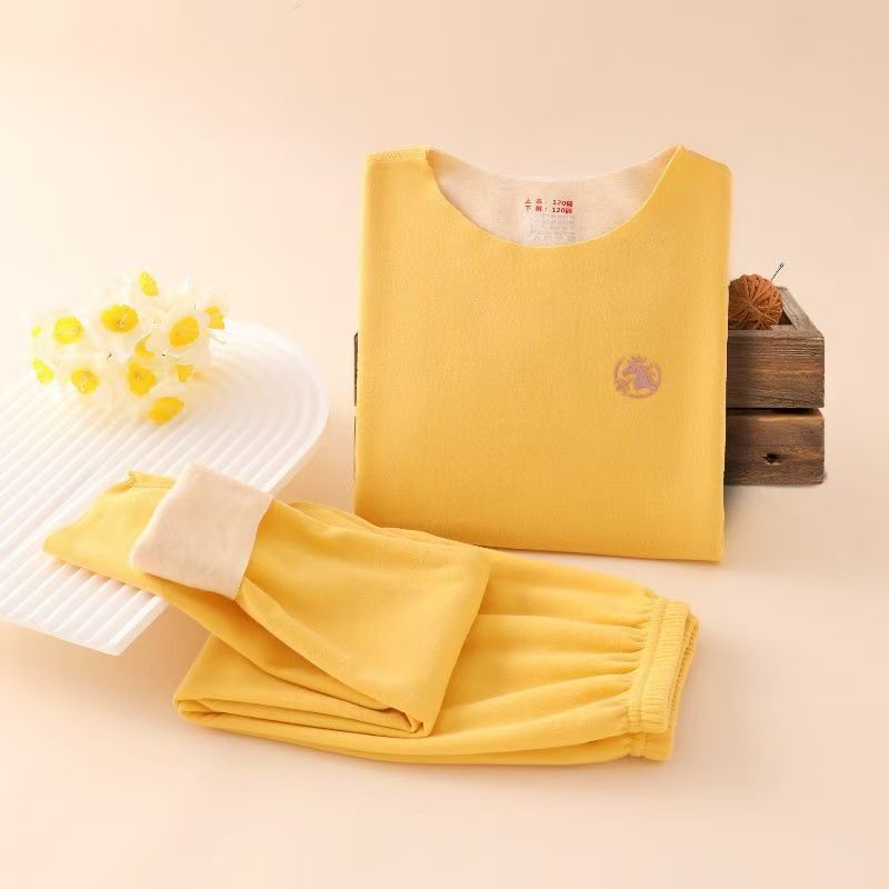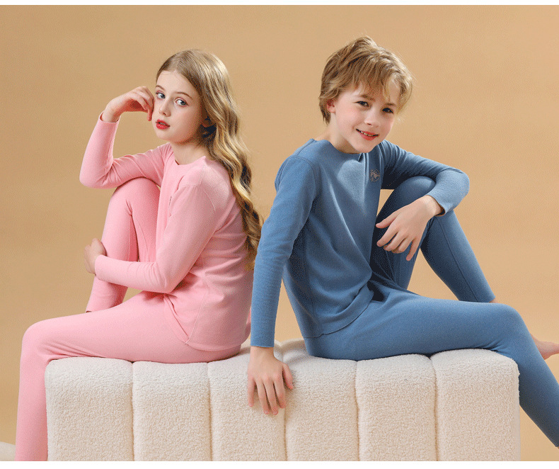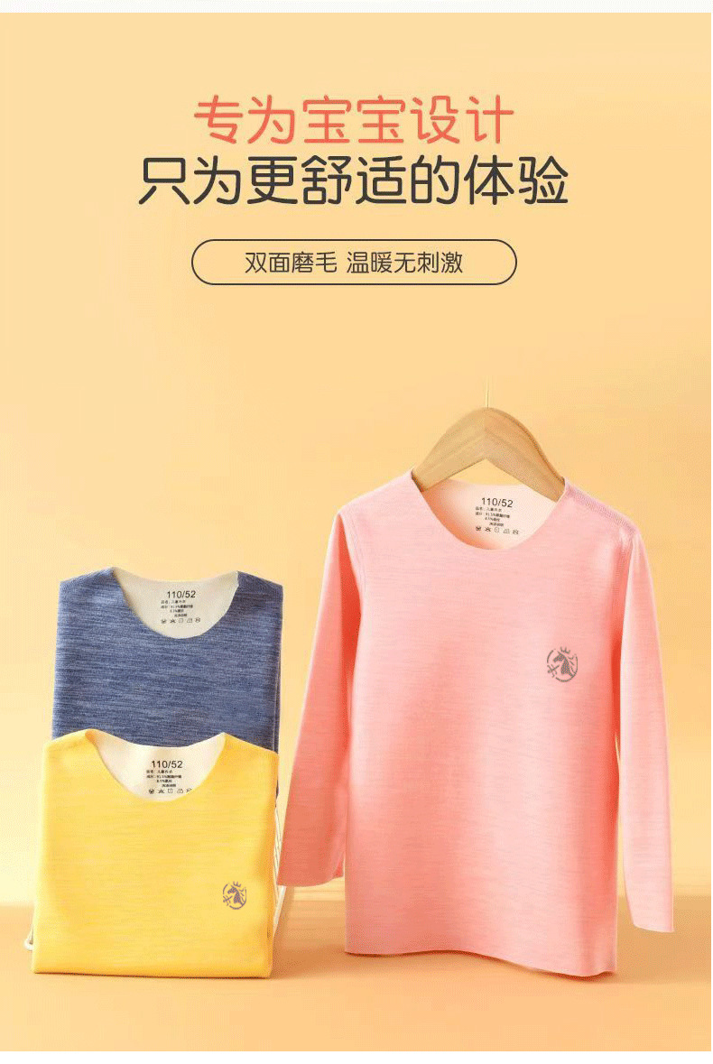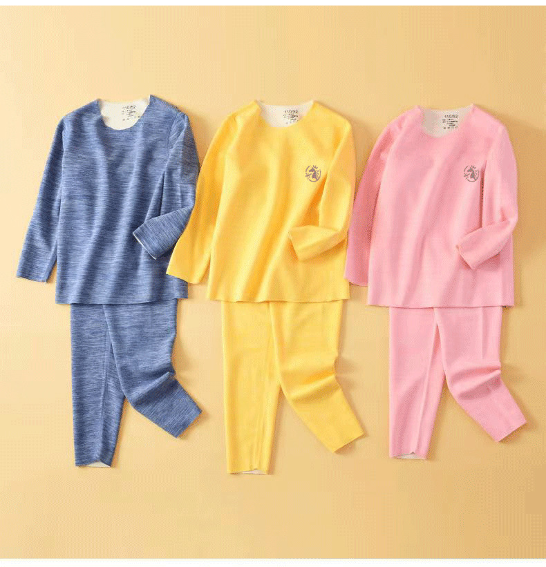 양모 실크 어린이 열 속옷 세트 소년과 소녀 플러스 벨벳 라운드 넥 가을 옷과 긴 바지 원활한 브러시 바닥스토어 가기
