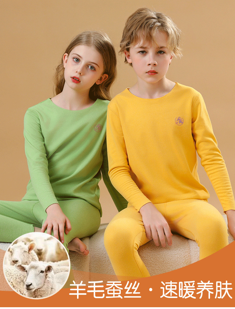 양모 실크 어린이 열 속옷 세트 소년과 소녀 플러스 벨벳 라운드 넥 가을 옷과 긴 바지 원활한 브러시 바닥