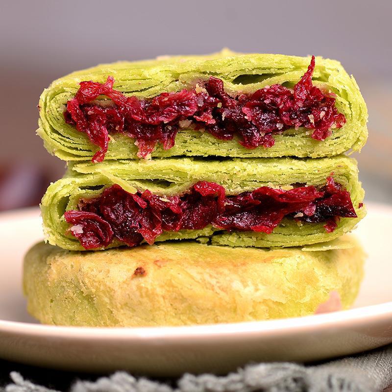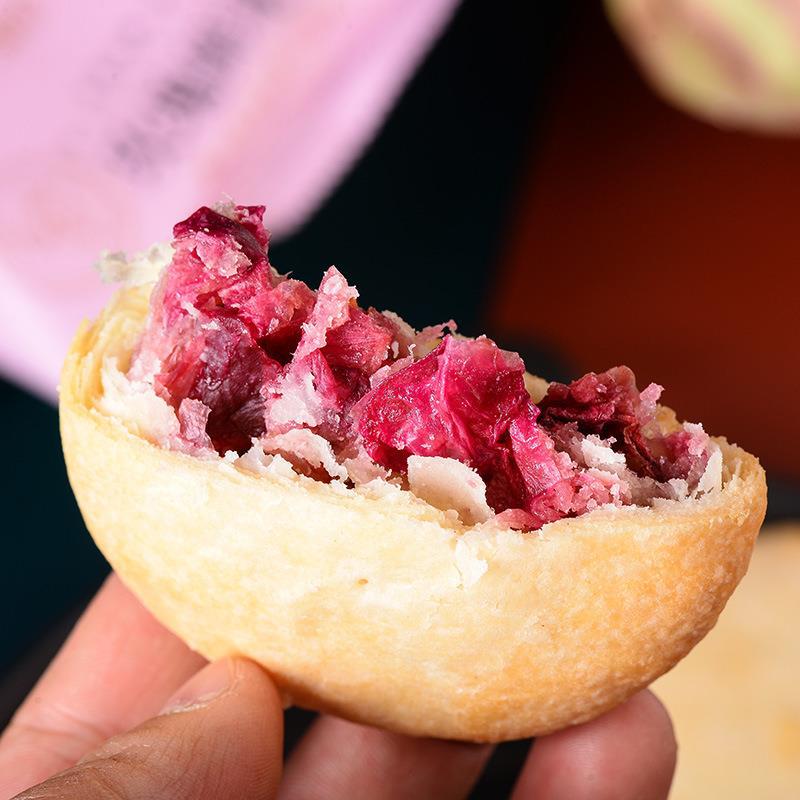 장미 꽃 케이크 윈난 특산 리장 꽃 케이크 보라색 고구마 말차 장미 케이크 아침 간식 전통 과자