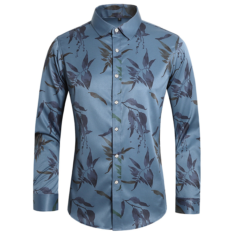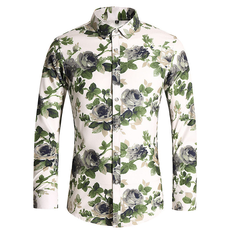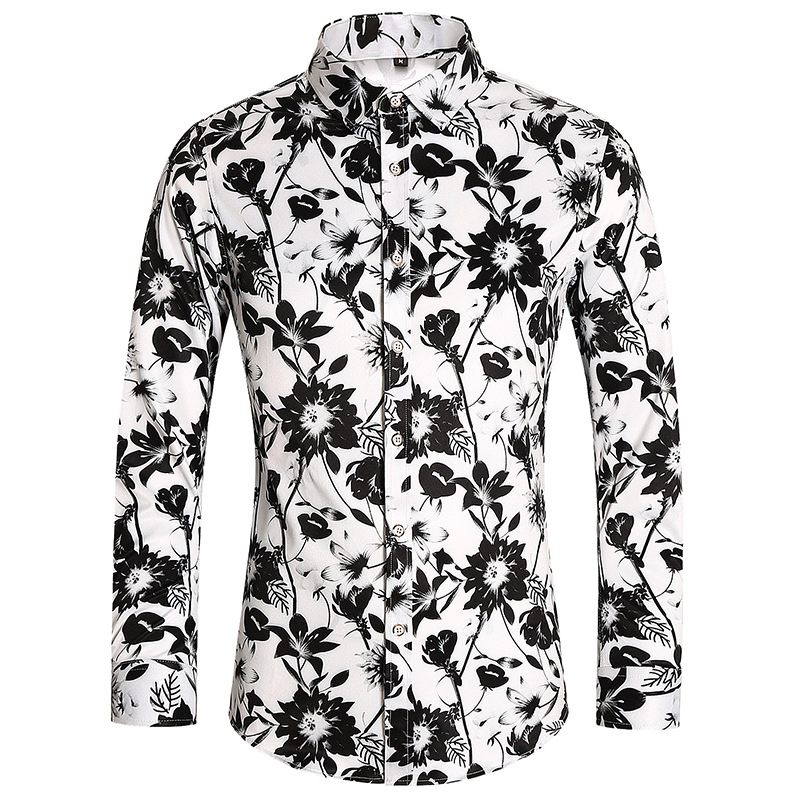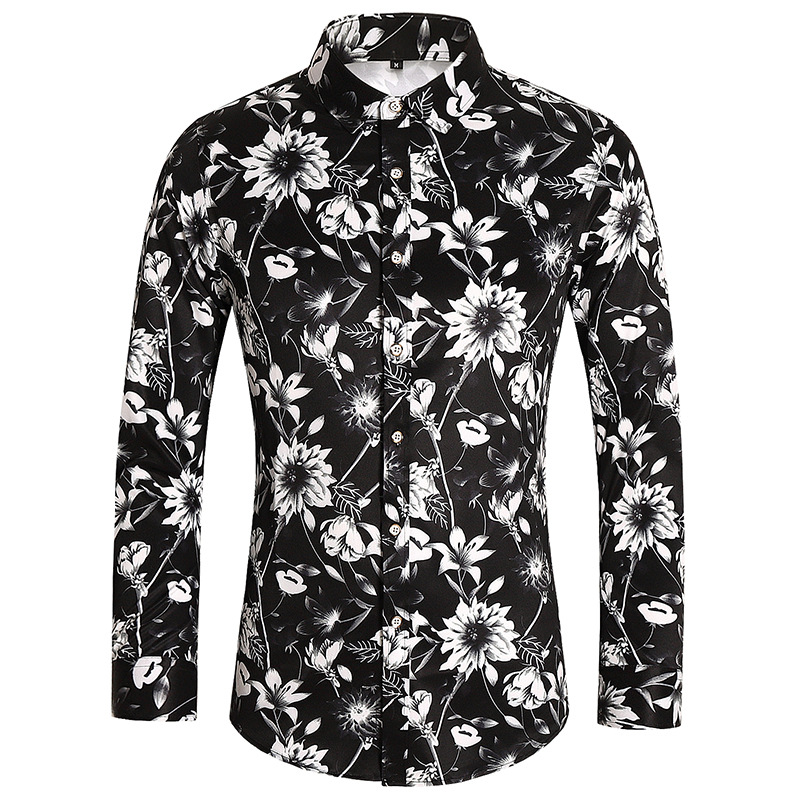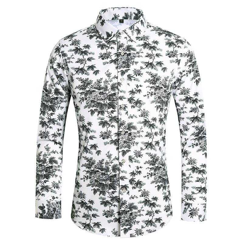 2025 신상 남성 슬림핏 긴팔 꽃무늬 셔츠 플러스 사이즈 디지털 프린팅 캐주얼 청년 셔츠