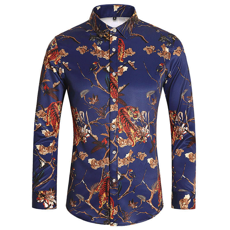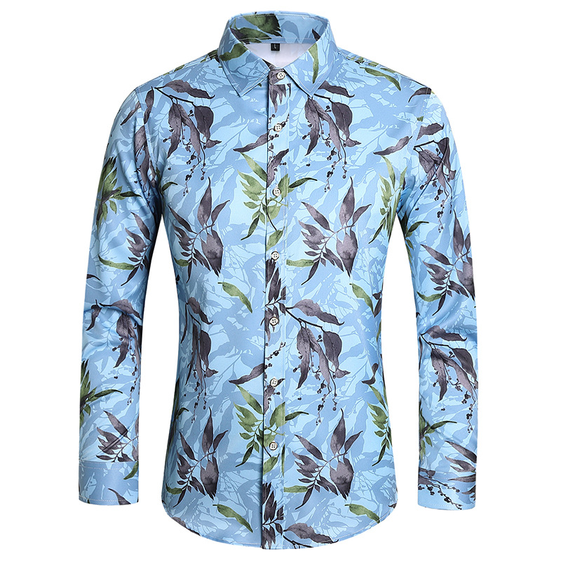 2025 신상 남성 슬림핏 긴팔 꽃무늬 셔츠 플러스 사이즈 디지털 프린팅 캐주얼 청년 셔츠스토어 가기