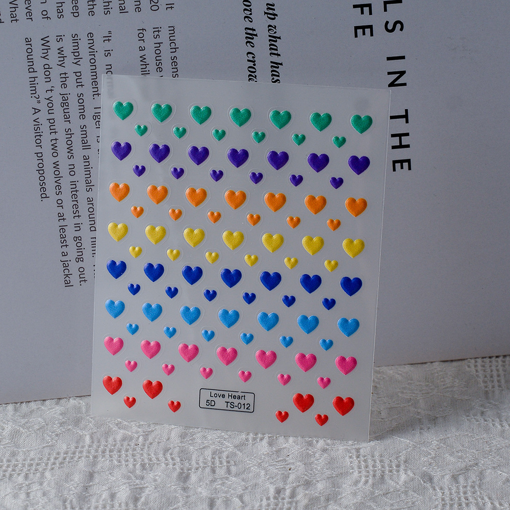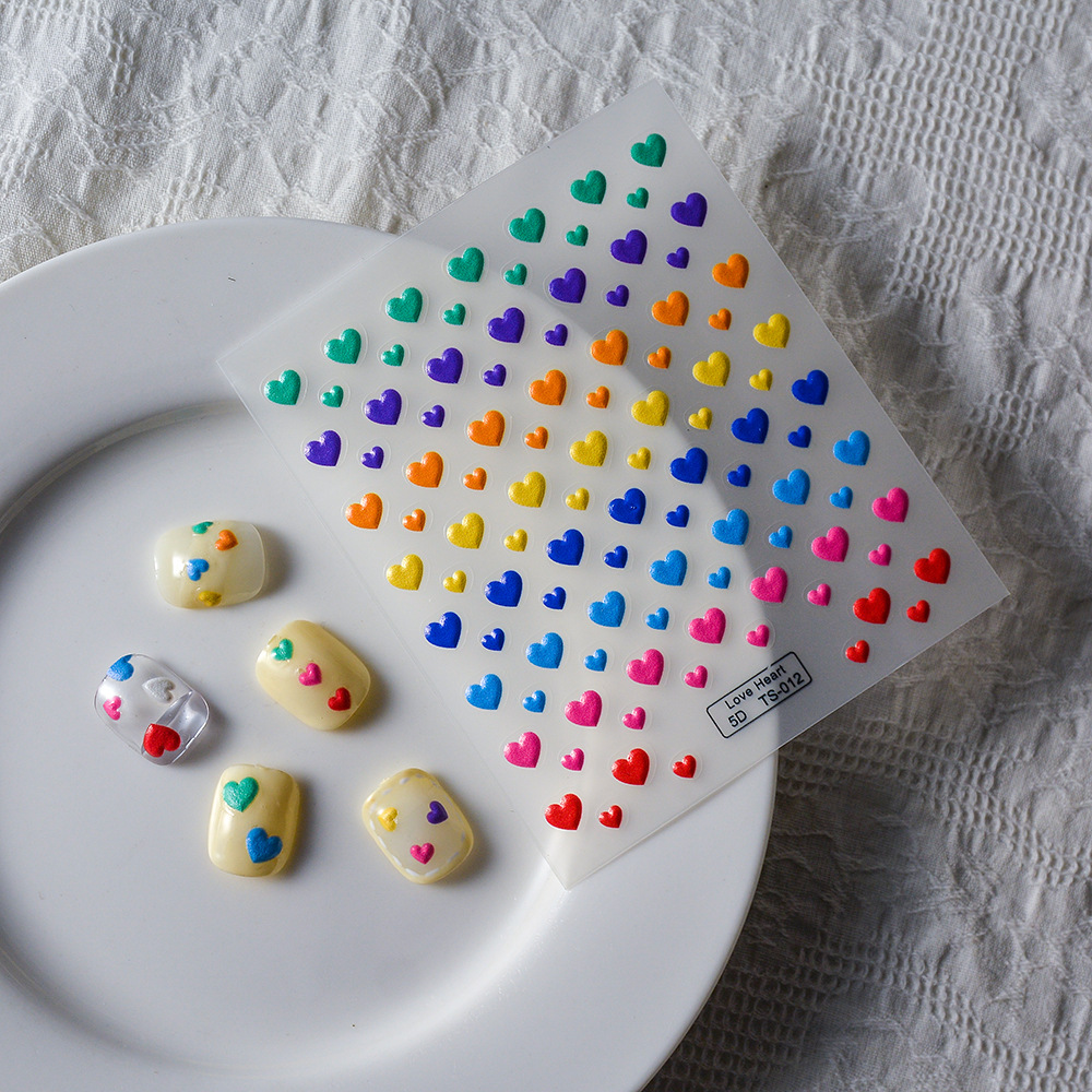 한국 색상 사랑 5D 네일 데칼 릴리프 접착제 임산부와 어린이를 위해 사용할 수있는 귀여운 네일 아트 스티커