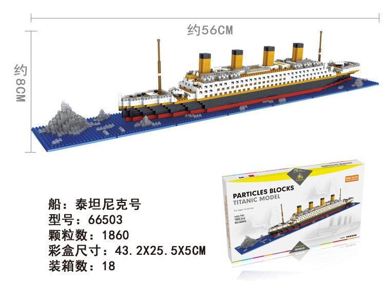 YZ小颗粒积木拼装玩具海盗船系列泰坦尼克号辽宁号66501-3 66520