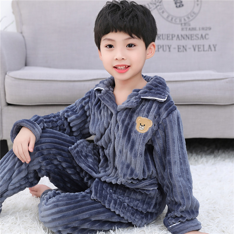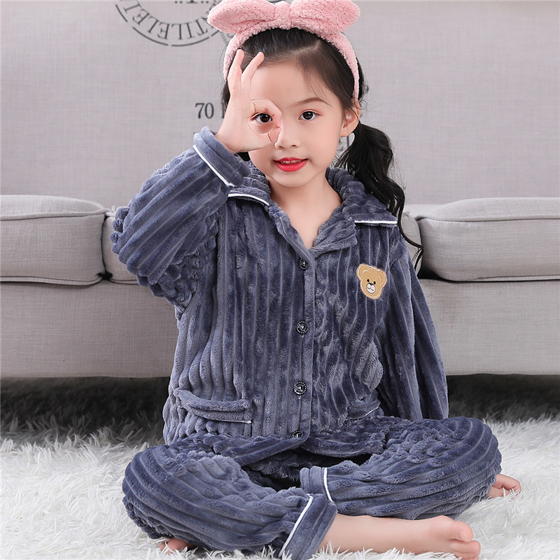 어린이 가을/겨울 플란넬 잠옷 세트 패딩 코튼 두꺼운 가정 옷 가을 바지 속옷 소년과 소녀를위한 세트