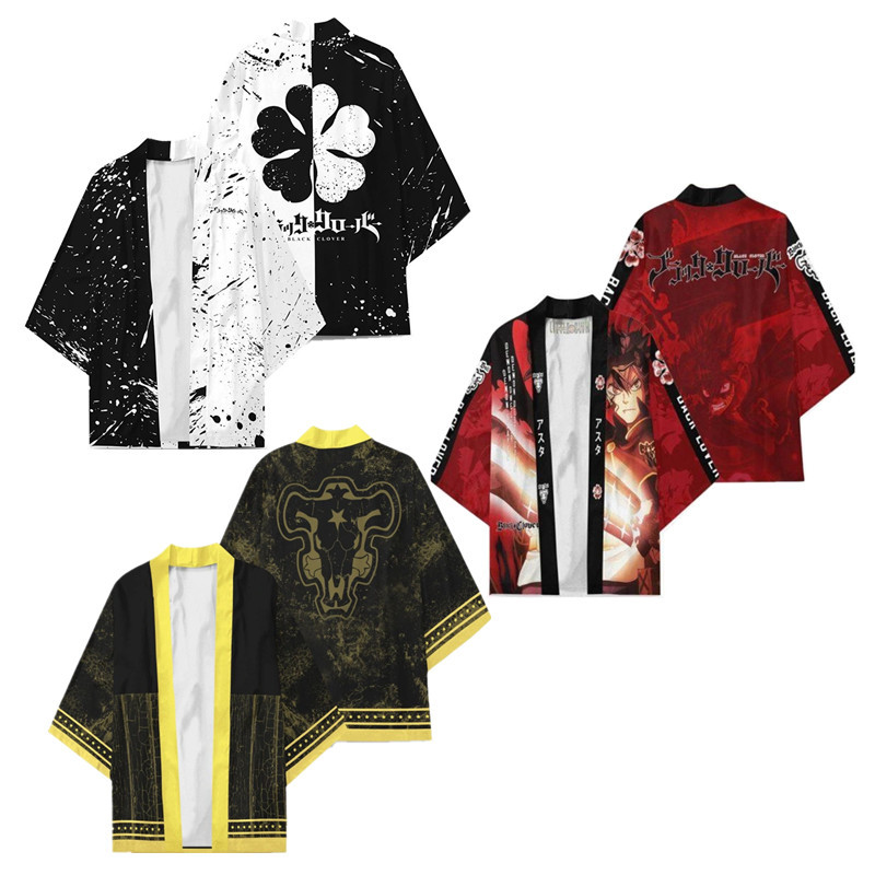 아마존 새로운 5 잎 클로버 디지털 인쇄 일본식 하라주쿠 기모노 로브 망토 파자마 카디건