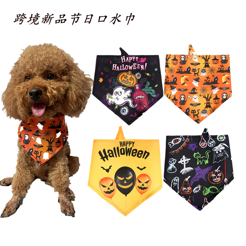 맞춤형 소스 공장 개 침 수건 할로윈 재미 있은 애완 동물 삼각형 수건 스카프 턱받이 애완 동물 침 수건스토어 가기