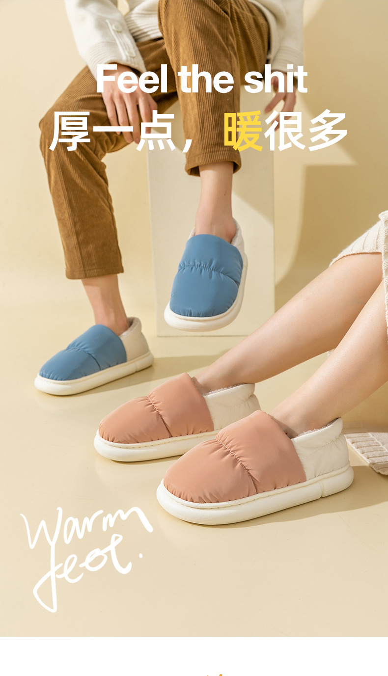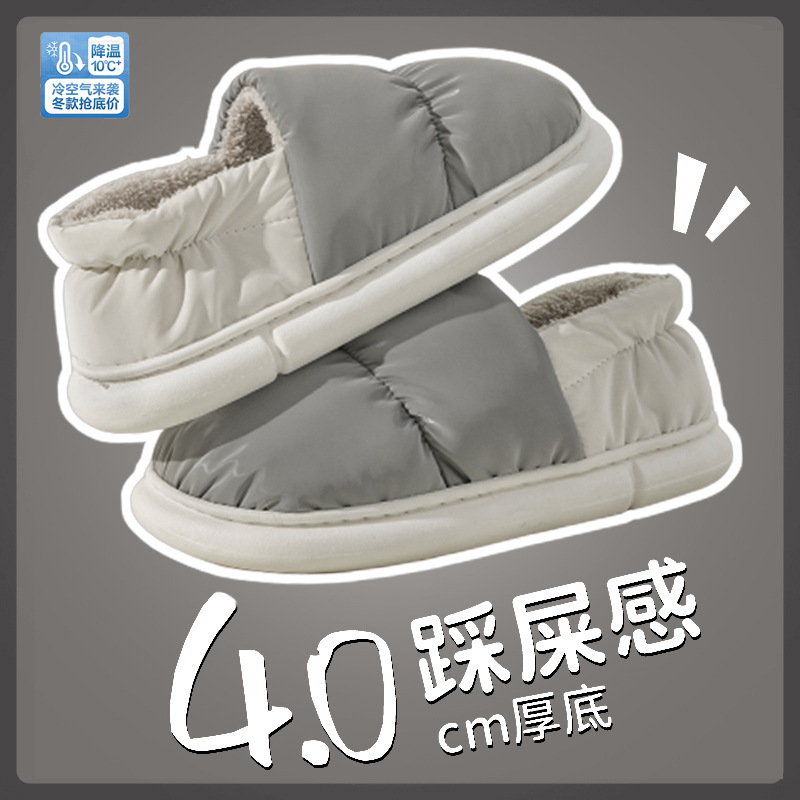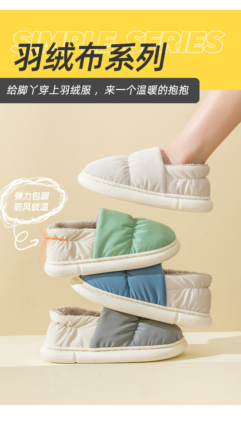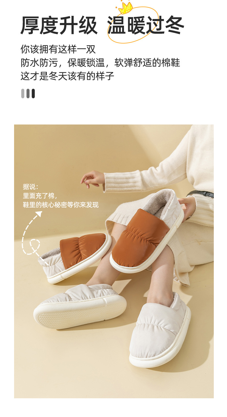 코튼 슬리퍼 가방 힐 홈 슬리퍼 겨울 여성의 방수 다운 천 두꺼운 신발 미끄럼 방지 따뜻한 면화 신발 남성 신발 도매