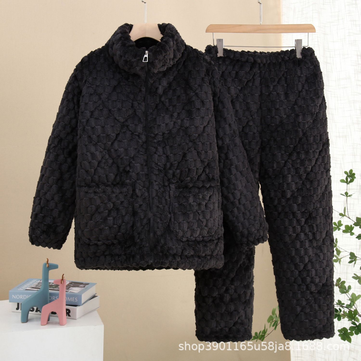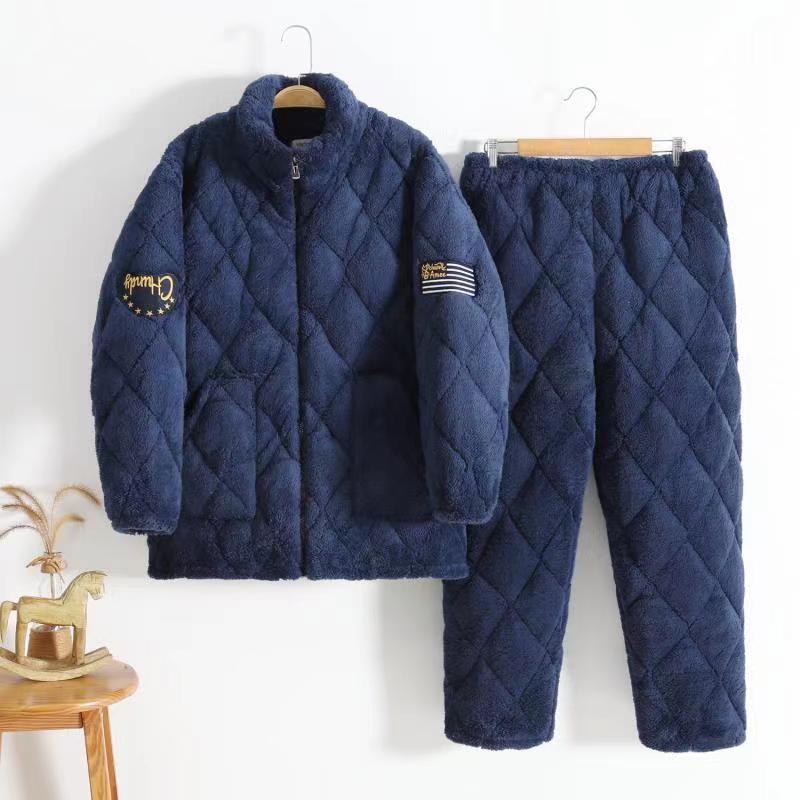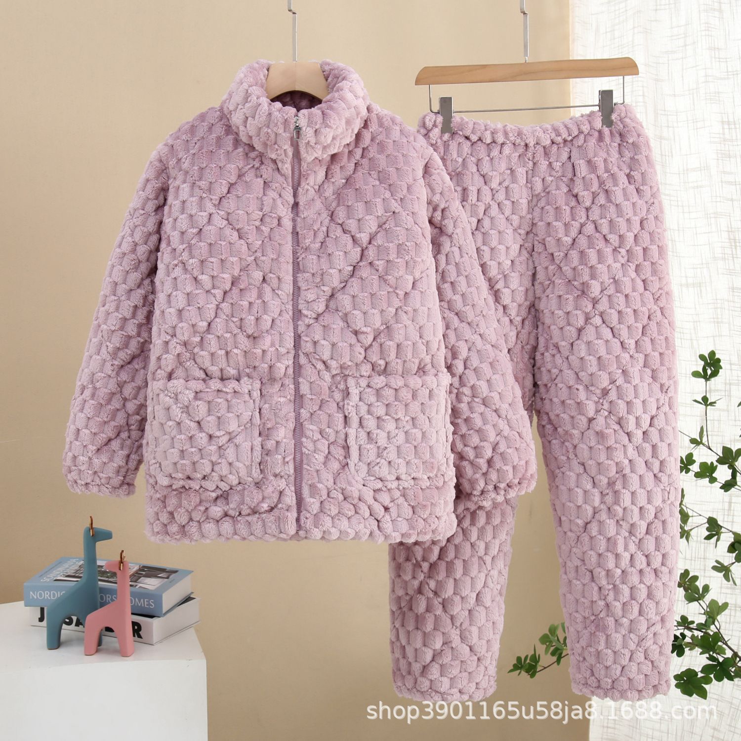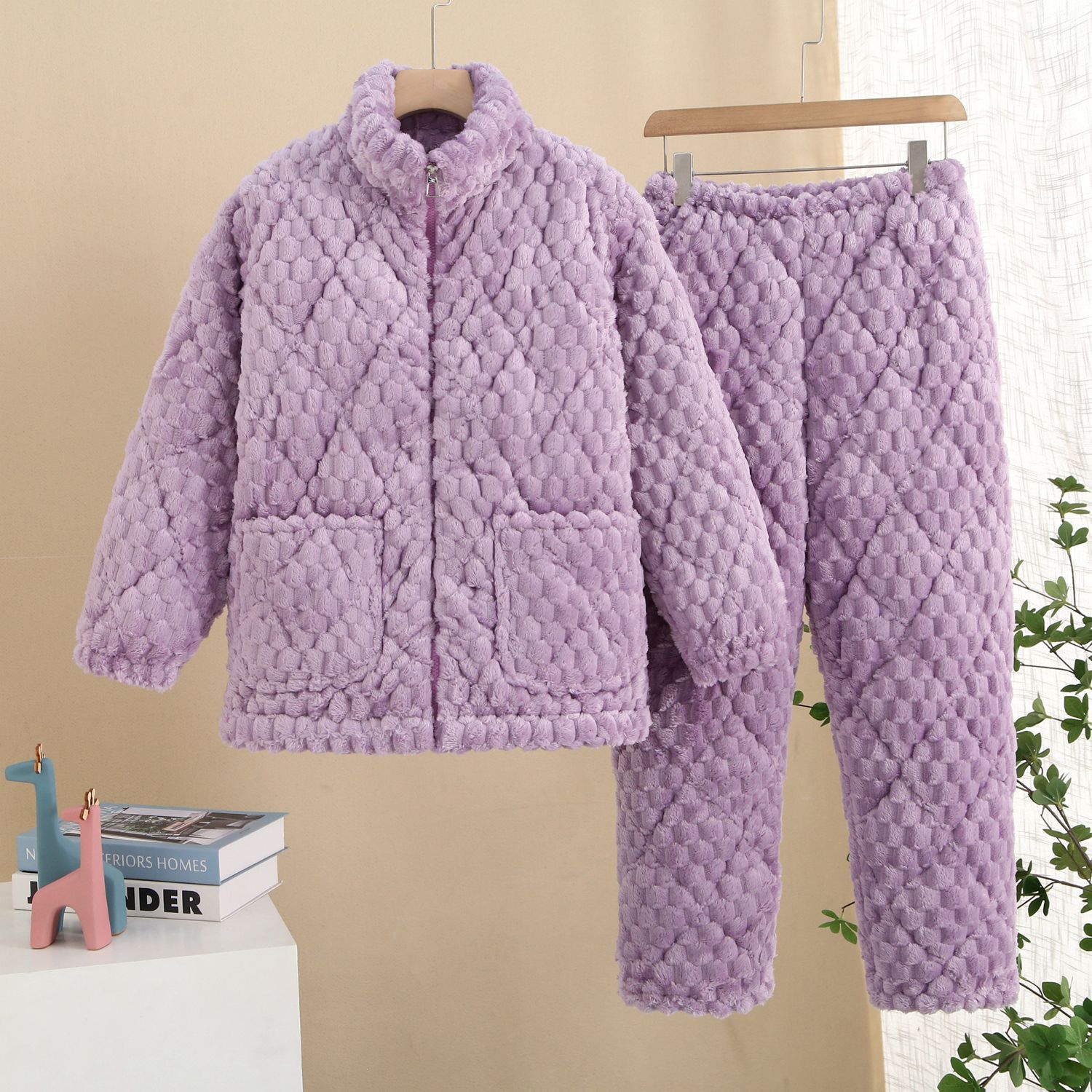 2023 겨울 퀼트 잠옷 여자의 두꺼운 기모 세트 겨울 자카드 지퍼 면 패딩 코트 가정 옷 따뜻한 외관