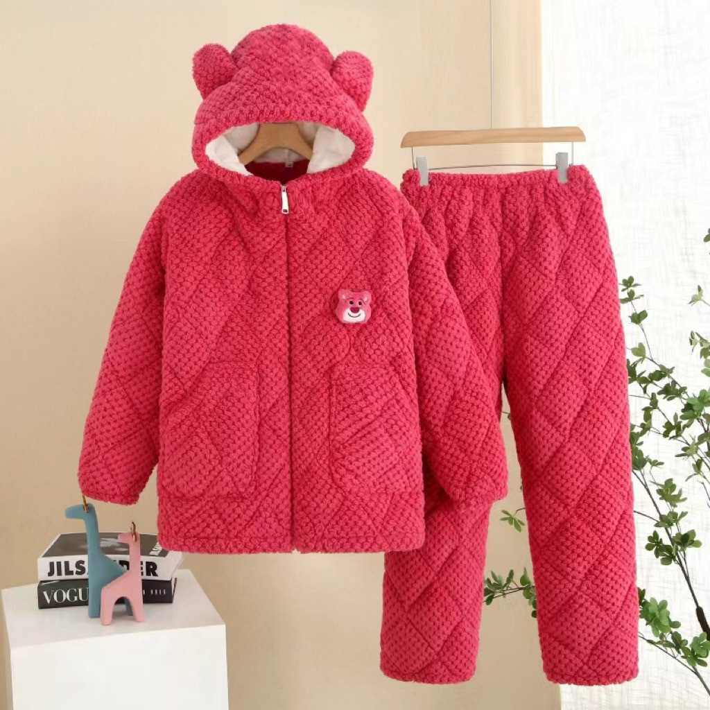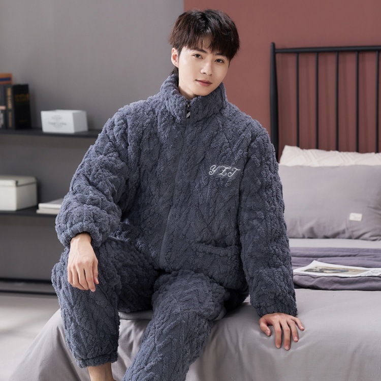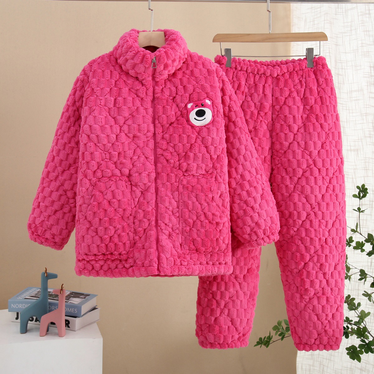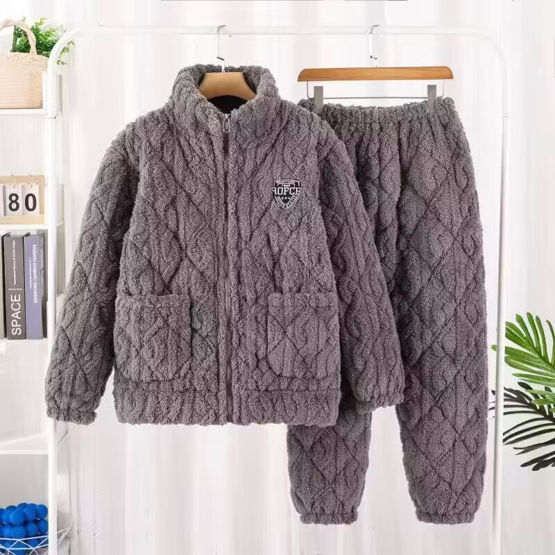 2023 겨울 퀼트 잠옷 여자의 두꺼운 기모 세트 겨울 자카드 지퍼 면 패딩 코트 가정 옷 따뜻한 외관