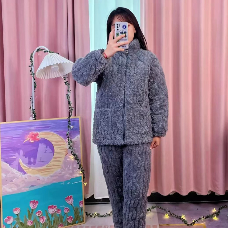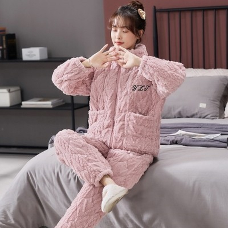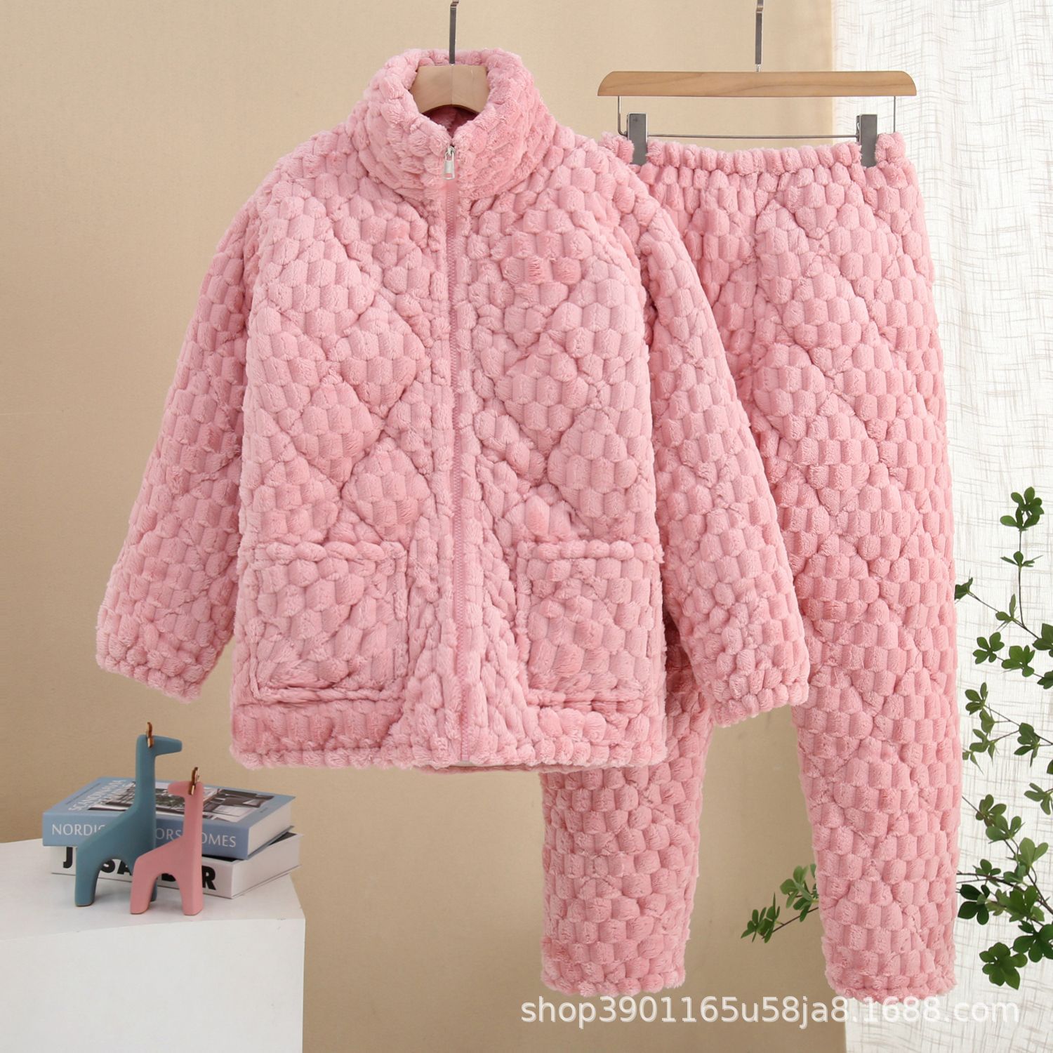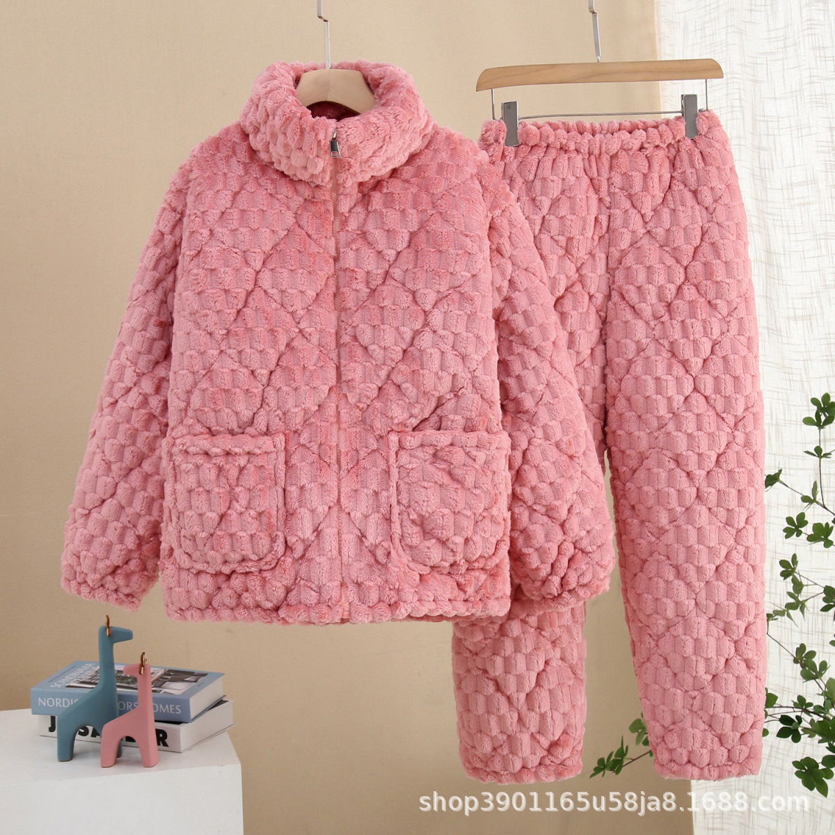 2023 겨울 퀼트 잠옷 여자의 두꺼운 기모 세트 겨울 자카드 지퍼 면 패딩 코트 가정 옷 따뜻한 외관스토어 가기