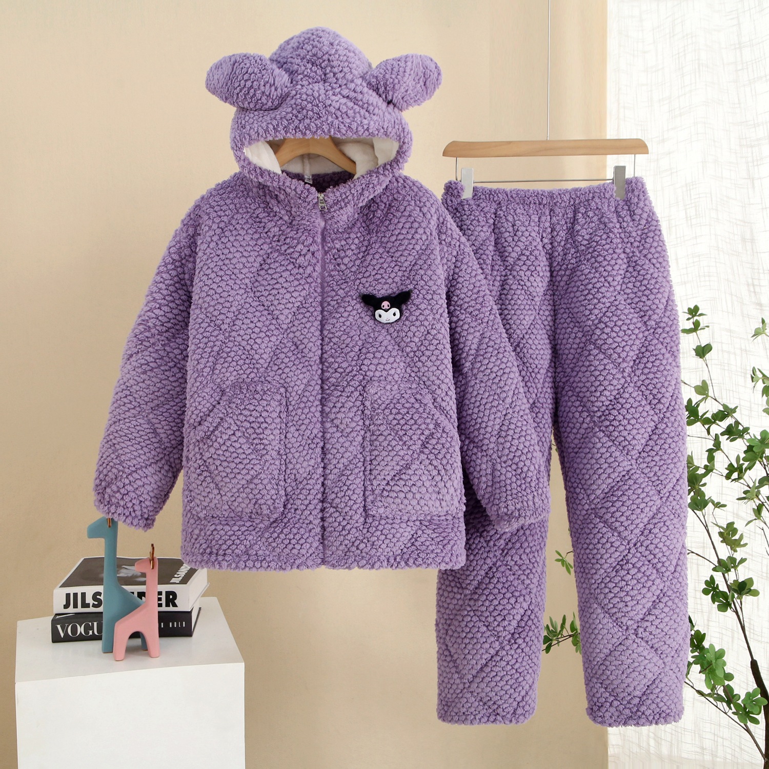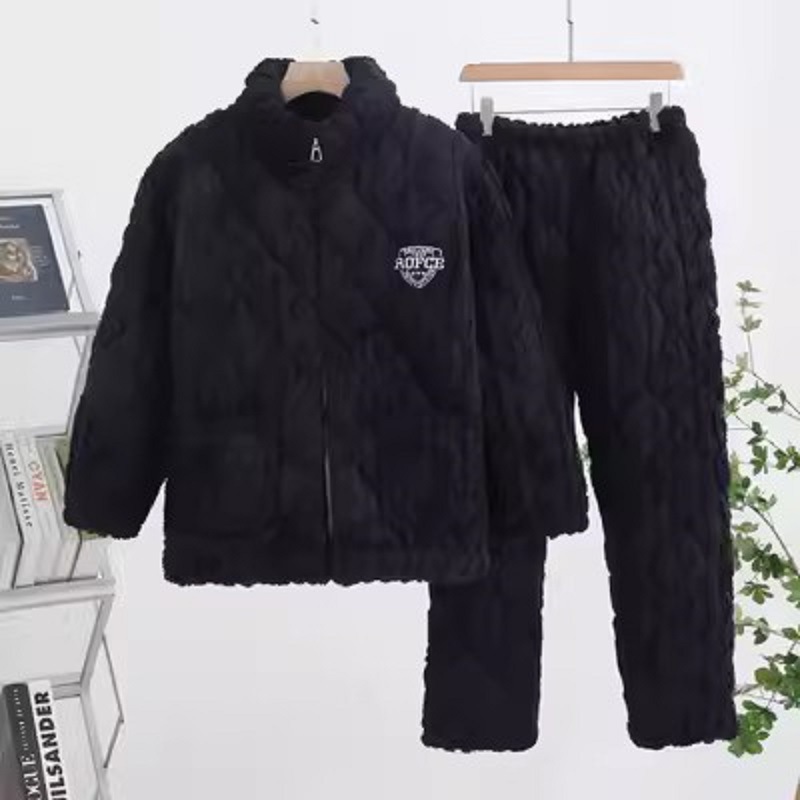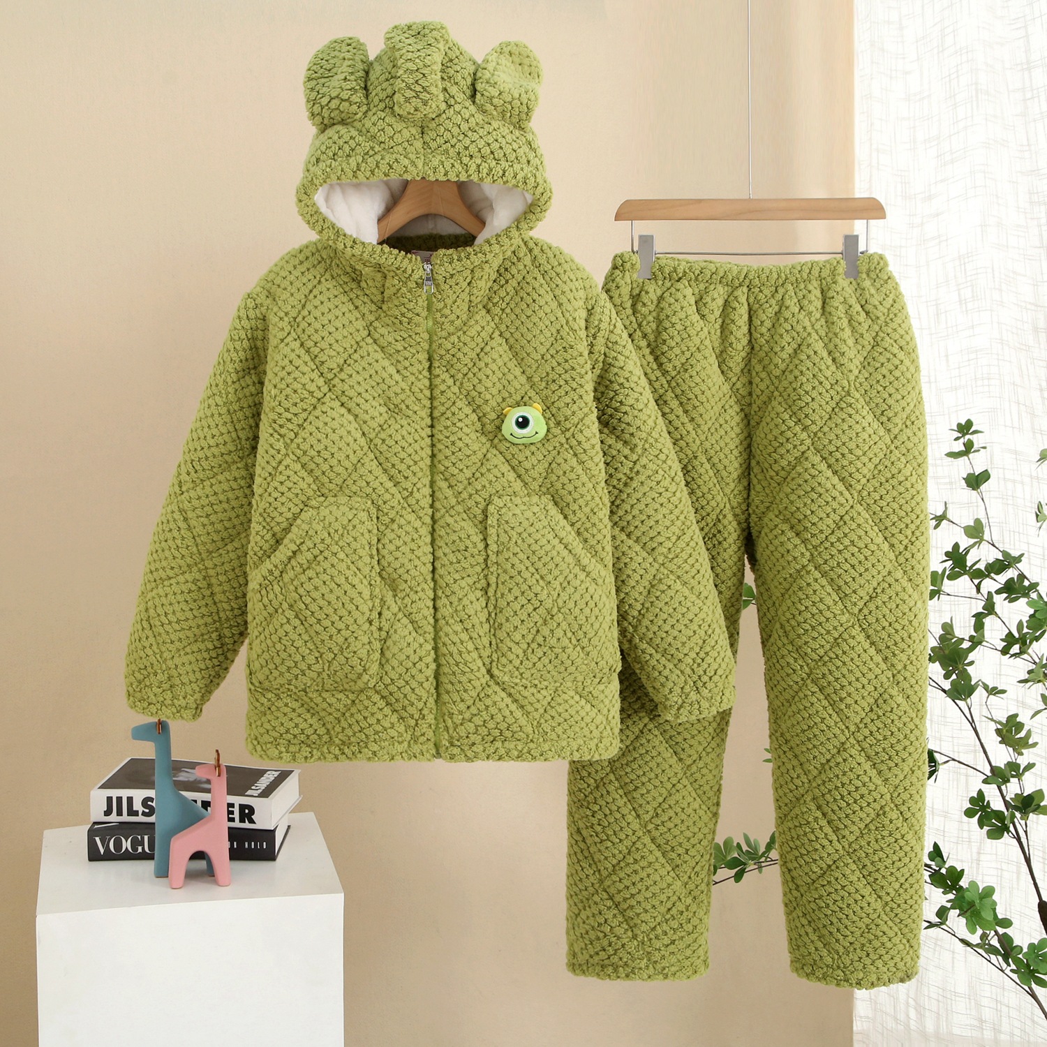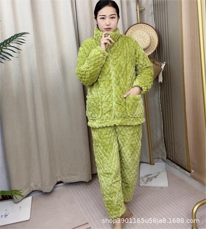 2023 겨울 퀼트 잠옷 여자의 두꺼운 기모 세트 겨울 자카드 지퍼 면 패딩 코트 가정 옷 따뜻한 외관스토어 가기