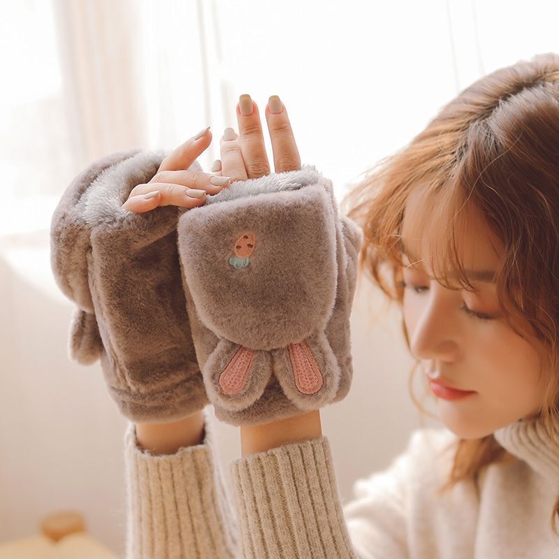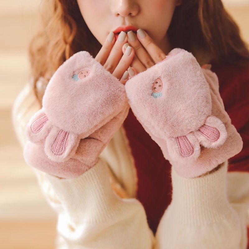 장갑 여자의 겨울 기모 학생 귀여운 한국식 방한 만화 두꺼운 봉제 가을과 겨울 사이클링 따뜻한 면 겨울스토어 가기