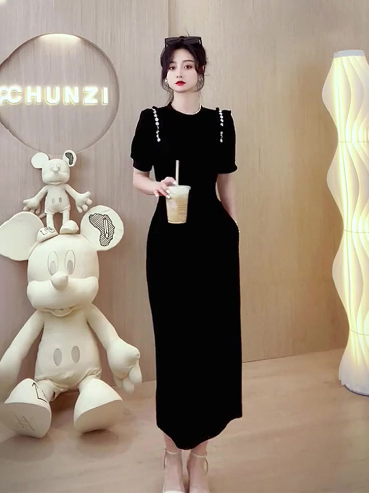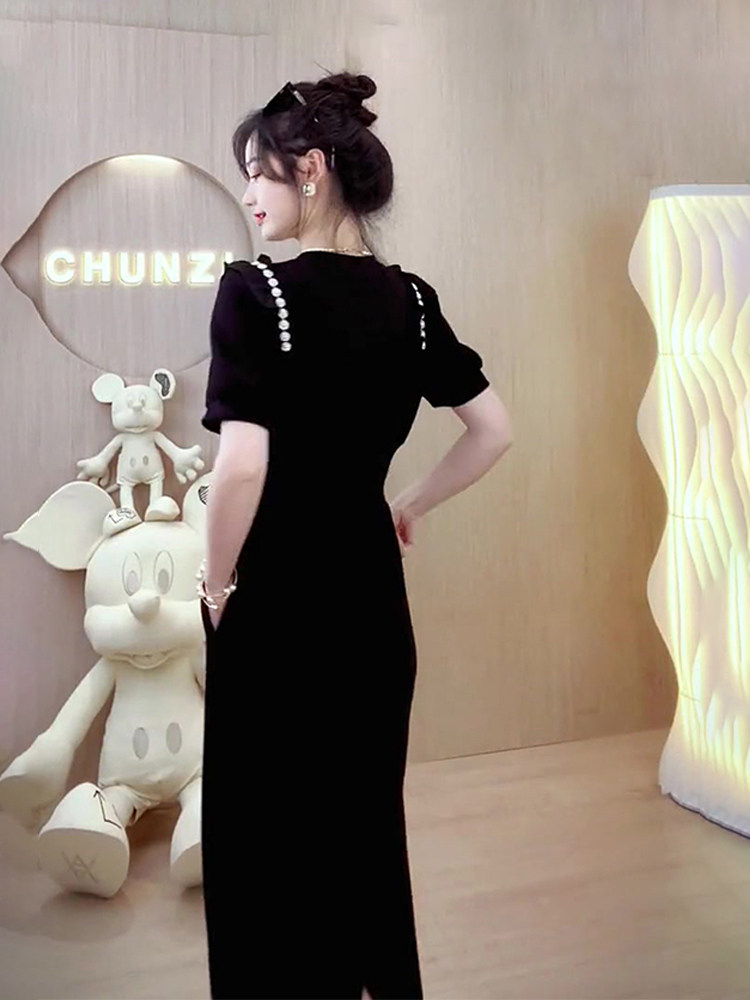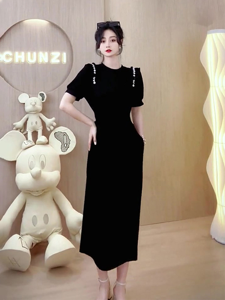 YT40434 여름 프랑스 고급 기질 슬림핏 블랙 시크 아름다운 원피스 로얄 시스터 빛 성숙한 스타일스토어 가기